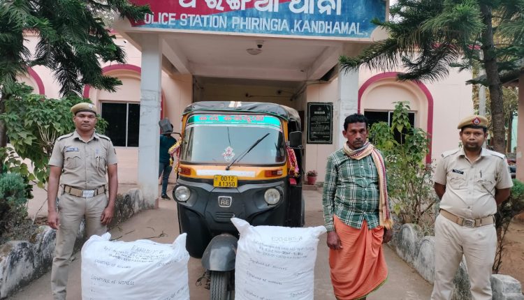 ଫୁଲବାଣୀ : କନ୍ଧମାଳ ଏସପି ଶୁଭେନ୍ଦୁ କୁମାର ପାତ୍ରଙ୍କ ନିର୍ଦ୍ଦେଶ କ୍ରମେ ଫିରିଙ୍ଗିଆ ଥାନା ଅଧିକାରୀ ତପନ କୁମାର ନାହାକଙ୍କ ନେତୃତ୍ୱରେ ପୋଲିସ ଟିମ ସୋମବାର ଲାଦରିଗାଁ ଘାଟିରେ ଚଢ଼ାଉ କରି ୭୫ କେଜିରୁ ଉର୍ଦ୍ଧ୍ୱ ଗଂଜେଇ ସହ ଏକ ଅଟୋ ରିକ୍ସା ମଧ୍ୟ ଜବତ କରିଛି । ଏହି ସଂକ୍ରାନ୍ତରେ ଅଭିଯୁକ୍ତ ଗୋକୁଳ ରଣାକୁ ଗିରଫ କରିଥିବା ଥାନା ଅଧିକାରୀ ତପନ ନାହାକ କହିଛନ୍ତି । ଏହି ଗଂଜେଇ ସାଡେଙ୍ଗିଆରୁ ବାଲିଗୁଡା ଅଂଚଳକୁ ଅଟୋରେ ଯାଉଥିବା ବେଳେ ବିଶେଷ ସୁତ୍ରରୁ ଖବର ପାଇ ପୋଲିସ ଟିମ ଚଢ଼ାଉ କରିଥିଲା । ଏ ସଂକ୍ରାନ୍ତରେ ଫିରିଙ୍ଗିଆ ପୋଲିସ ୪୪/୨୪ ରେ ମାମଲା ରୁଜ୍ଜୁ କରିଥିବା ଥାନା ଅଧିକାରୀ ତପନ ନାହାକ କହିଛନ୍ତି ।