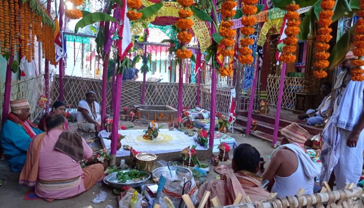 ସୁବର୍ଣ୍ଣପୁର,: ପଣ୍ଡିତଙ୍କ ମନ୍ତ୍ର ଧ୍ୱନିରେ ଭାବଗମ୍ଭୀର ହୋଇଉଠିଛି ଢେରାପଡା ସ୍ଥିତ ସମଗ୍ର ପରିବେଶ ।ଗତକାଲି କଳସାଧିବାସ ପରେ ମଣ୍ଡଳପୂଜନ କ୍ରମରେ ଗୌରୀ ତିଳକ ମଣ୍ଡଳ,ବାସ୍ତୁ ମଣ୍ଡଳ,କ୍ଷେତ୍ରପାଳ ମଣ୍ଡଳ, ନବଗ୍ରହ ମଣ୍ଡଳ, ବିଷ୍ଣୁ ସର୍ବତୋଭଦ୍ର ମଣ୍ଡଳ, ଦୁର୍ଗା ସର୍ବତୋ ଭଦ୍ର ମଣ୍ଡଳ,ଏକଲିଙ୍ଗ ଭଦ୍ର ମଣ୍ଡଳ ଓ ଯୋଗିନୀ ମଣ୍ଡଳରେ ବିଭିନ୍ନ ପୂଜାହେବାସହ ଆଜି ସକାଳୁ ସୂର୍ଯ୍ୟ ପୂଜା, ଗ୍ରହପୂଜା, ଗୋ ପୂଜା,ଗୁରୁ ପୂଜନ, ସର୍ବ ଦେବାଦେବୀ ପୂଜନ, ଅଗ୍ନି ସ୍ଥାପନମ୍ ପରେ ଆରତୀ ପୁଷ୍ପାଞ୍ଜଳି କରାଯାଇଛି । ଯଜ୍ଞ ମଣ୍ଡପରେ ମୁଖ୍ୟ ଆଚାର୍ଯ୍ୟ ଭାବରେ ରାଧେଶ୍ୟାମ ପୁରୋହିତ, ବ୍ରହ୍ମା ଶିବନାରାୟଣ ପୂଜାରୀ ଓ ଜାପକ ଭାବରେ ରାମାନୁଜ, ଗଣେଶ ଓ ଆନନ୍ଦ କର୍ମ ତୂଳାଉଥିବା ବେଳେ କର୍ତ୍ତାଭାବରେ ବି. ଗୌରୀ ଶଙ୍କର ଓ ତାଙ୍କ ଧର୍ମପତ୍ନୀ ସରସ୍ୱତୀ ଦେବୀ ନ୍ୟସ୍ତ ଅଛନ୍ତି ଗୋବିନ୍ଦ, ଦୟାନିଧି, ନାରାୟଣ ସିମାଞ୍ଚଳ ଓ ରାମକୁମାର ପାତ୍ର ପ୍ରମୁଖ ସମସ୍ତ କାମରେ ସହାୟତା କରିଛନ୍ତି । ବୁଢିମା ମନ୍ଦିର ପ୍ରତିଷ୍ଠା ମହୋତ୍ସବ ଆସନ୍ତା ୨୫ତାରିଖ ପର୍ଯ୍ୟନ୍ତ ଚାଲିବାକୁଥିବା ବେଳେ ଉକ୍ତ ଦିନ ପୂର୍ଣ୍ଣାହୂତି ସହ ବୁଢିମା ଠାକୁରାଣୀଙ୍କ ମନ୍ଦିର ବିଜେ କାର୍ଯ୍ୟକ୍ରମ ରହିଛି ।