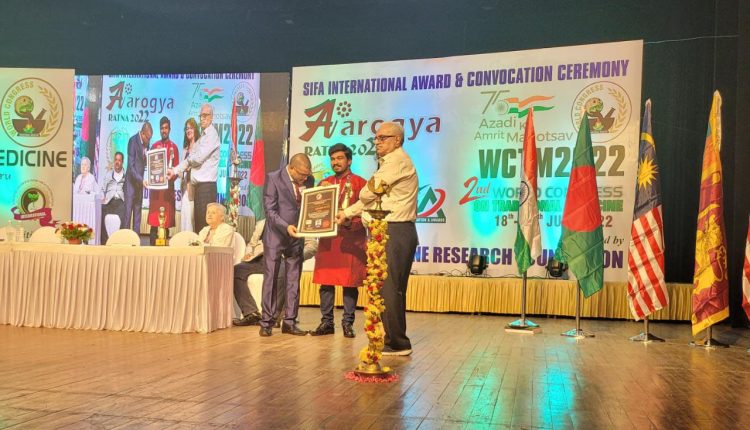ପାରଳାଖେମୁଣ୍ଡି :ହାଲିଷ୍ଟିକ୍ ମେଡିସିନ ରିସର୍ଚ୍ଚ ଫାଉଣ୍ଡେସନ(ଏଚ୍ଏମ୍ଆର୍ଏଫ)ଦ୍ୱାରା ଆୟୋଜିତ ୨ୟ ପାରମ୍ପରିକ ଔଷଧ ବିଶ୍ୱ ସମ୍ମିଳନୀର ଏକ ବର୍ଣ୍ଣାଢ଼୍ୟ ସମାବର୍ତ୍ତନ କାର୍ଯକ୍ରମରେ ଏସ୍ଆଇଏଫ୍ଏ ଆନ୍ତର୍ଜାତୀୟ ପୁରସ୍କାର ଓ ସମାବର୍ତ୍ତନ ଉତ୍ସବରେ ଯୁବ ଡକ୍ଟର ନରସିଂହ ପ୍ରସାଦ ଚରତିଙ୍କୁ ସର୍ବୋତ୍ତମ ପଦକ “ଆରୋଗ୍ୟ ରତ୍ନ ୨୦୨୨” ରେ ଭୂଷିତ କରାଯାଇଛି । ସେ ଜଣେ ବିକଳ୍ପ ଔଷଧ ଅଭ୍ୟାସକାରୀ । କର୍ଣ୍ଣାଟକର ବେଙ୍ଗାଲୁରୁ ସ୍ଥିତ ଡକ୍ଟର ବି. ଆର୍. ଆମ୍ବେଦକର ଭବନ ଅଡିଟୋରିୟମରେ ଏଚ୍ଏମ୍ଆର୍ଏଫ,ତେଲେଙ୍ଗାନା ଦ୍ୱାରା ଆୟୋଜିତ ଏକ ବର୍ଣ୍ଣାଢ଼୍ୟ କାର୍ଯକ୍ରମରେ ଡ. ଚରତିଙ୍କୁ ଏହି ସର୍ବୋତ୍ତମ ମାନପତ୍ର ପ୍ରଦାନ କରାଯାଇଥିଲା । ପାରମ୍ପରିକ ଆୟୁର୍ବେଦ ଔଷଧରେ ସିଦ୍ଧହସ୍ତ ତଥା ଏକ ସଫଳ ଯୁବ ଡ଼ାକ୍ତର ଭାବେ ତାଙ୍କୁ ଏଇ ସର୍ବ ବୃହତ୍ ଆରୋଗ୍ୟ ରତ୍ନ ୨୦୨୨ ରେ ଉକ୍ତ ଆନ୍ତର୍ଜାତୀୟ ମହାମଞ୍ଚରେ ଭୂଷିତ କରାଯାଇଥିଲା । ସୂଚନାଯୋଗ୍ୟ କି ସର୍ବପ୍ରଥମେ ଡ଼ାକ୍ତର ନରସିଂହ ପ୍ରସାଦ ଚରତିଙ୍କ ତବଲା ବାଦନରୁ ଏଇ କାର୍ଯ୍ୟକ୍ରମର ଶୁଭାରମ୍ଭ ହୋଇଥିଲା । ଏଚ୍ଏମ୍ଆର୍ଏଫର ସମସ୍ତ ସଦସ୍ୟମାନଙ୍କ ସହ ୫୩ ଗୋଟି ଦେଶର ଡ଼ାକ୍ତରମାନେ ବିଶ୍ୱବ୍ୟାପୀ ପାରମ୍ପରିକ ଔଷଧର ପ୍ରଚାରପ୍ରସାର କରି ବିଶ୍ୱରେ ଏକ ଐତିହାସିକ ରେକର୍ଡ଼ ସୃଷ୍ଟି କରିଥିଲେ । ଏଇ ବଛା ବଛା ପାରମ୍ପରିକ ଔଷଧ ପ୍ରୟୋଗକରି ଡାକ୍ତରୀ ଦଳଙ୍କ ଏଇ ସଫଳ ଯାତ୍ରା ନିମନ୍ତେ ଦୀପକ ରାଉତଙ୍କ ତତ୍ତ୍ୱାବଧାନରେ ୨ଦିନ ଧରି ଏଇ ୨ୟ ପାରମ୍ପରିକ ଔଷଧ ବିଶ୍ୱ ସମ୍ମିଳନୀ ଅନୁଷ୍ଠିତ ହୋଇଥିଲା । ଏହି ବର୍ଣ୍ଣାଢ଼୍ୟ କାର୍ଯ୍ୟକ୍ରମରେ ଭାବେ ଆନ୍ତର୍ଜାତୀୟ ପ୍ରମୁଖ ଅତିଥି ଭାବେ ଆଲ୍ ଫାରବି କାଝକ୍ ଜାତୀୟ ବିଶ୍ୱବିଦ୍ୟାଳୟର କୁଳପତି ଡ.ତାତ୍ୟାନା ମୌଲ୍ , ମୁଖ୍ୟ ଅତିଥି ଭାବେ କର୍ଣ୍ଣାଟକର ମୁଖ୍ୟମନ୍ତ୍ରୀ ବାସଭରାଜ ବୋମ୍ମାଇ, ସ୍ୱାସ୍ଥ୍ୟ ଓ ପରିବାର କଲ୍ୟାଣ ମନ୍ତ୍ରୀ ଡ. କେ.ସୁଧାକର ଏବଂ ଆନ୍ତର୍ଜାତୀୟ ବକ୍ତା ଭାବେ ସୁଇଜରଲ୍ୟାଣ୍ଡର ପ୍ରୋ ଡ. ଜ୍ୟାକଲିନ୍ ଜ୍ୟାକୟୁସ, ପ୍ରୋ. ଡ. ଅଲି ଇରାନୀ ଏବଂ ସମ୍ମାନିତ ଅତିଥି ଭାବେ ଭାରତୀୟ ପ୍ରଫେସର୍ ଡ. ଇନ୍ଦ୍ରଜିତ ସିଂହ ଏବଂ ଇସ୍ରୋର ତତ୍କାଳୀନ ବିଶିଷ୍ଟ ବୈଜ୍ଞାନିକ ଡ. ଭୋଜରାଜ ଗାଉଡେର୍ ପ୍ରମୁଖ ଉପସ୍ଥିତ ରହିଥିଲେ ।