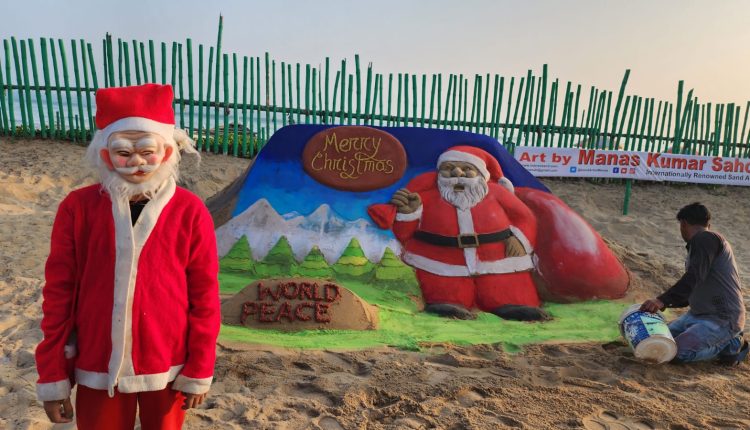 ପୁରୀ : ଆନ୍ତର୍ଜାତିକ ବାଲୁକା ଶିଳ୍ପୀ ମାନସ କୁମାର ସାହୁ ଚଳିତ ଖ୍ରୀଷ୍ଟମାସ ଉପଲକ୍ଷେ ସାନ୍ତାକ୍ଲଜର ବାଲୁକା କଳା ନିର୍ମାଣ କରିଛନ୍ତି ।