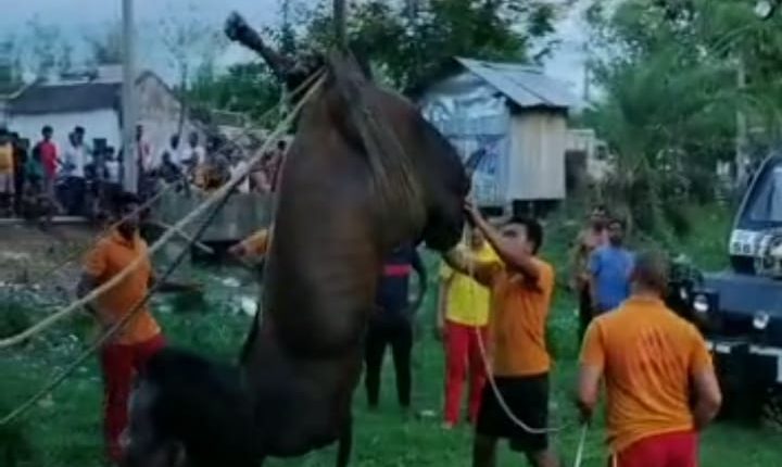 ହରଭଙ୍ଗା : ହରଭଙ୍ଗା ବ୍ଲକ ହରଭଙ୍ଗା ମେଡିକାଲ ଛକ ନିକଟରେ ଥିବା ଏକ ଖୋଲା କୂପରୁ ବୁଲା ଷଣ୍ଢକୁ ଉଦ୍ଧାର କରାଯାଇଛି । ଘଟଣା ଅନୁସାରେ ମଙ୍ଗଳବାର ସନ୍ଧ୍ୟା ପ୍ରାୟ ୫ଘଣ୍ଟା ସମୟରେ ହରଭଙ୍ଗା ମେଡିକାଲ ନିକଟରେ ଗୋରୁଗାଈ ଚରାବୁଲା କରୁଥିଲେ । ହଠାତ ଦୁଇଟି ଷଣ୍ଢ ମାଡ଼ ହେବାରୁ ସେଥିରୁ ଗୋଟିଏ କୂଅ ଭିତରେ ପଡିଯାଇଥିଲା । ସଙ୍ଗେ ସଙ୍ଗେ ସ୍ଥାନୀୟ ଲୋକ ହରଭଙ୍ଗା ଅଗ୍ନିଶମକୁ ଖବର ଦେବାରୁ ଅଗ୍ନିଶମ ବାହିନୀ ପହଂଚି ୨୦ଫୁଟ କୂପ ଭିତରୁ ଷଣ୍ଢକୁ ଏକ ହାଇଡ୍ରା ମେସିନ ସାହାଯ୍ୟ ସହିତ ନିଜେ କୂଅ ଭିତରକୁ ପଶି ଷଣ୍ଢଟିକୁ ନିରାପଦରେ ଉଦ୍ଧାର କରିଥିବାର ଦେଖାଦେଇଛି ।