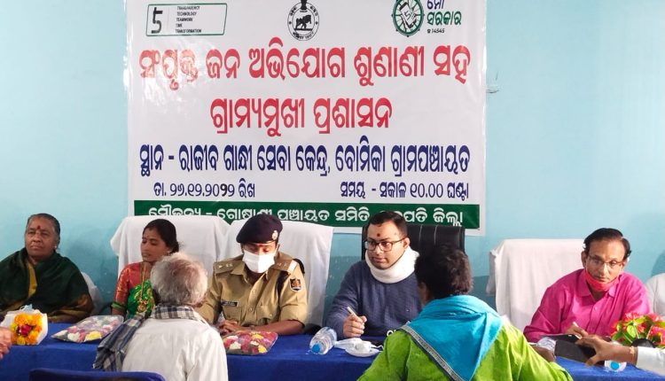 ପାରଳାଖେମୁଣ୍ଡି : ଗଜପତି ଜିଲ୍ଲା ଗୋଶାଣୀ ବ୍ଳକ ଅନ୍ତର୍ଗତ ବୋମିକା ଗ୍ରାମ ପଞ୍ଚାୟତର ରାଜୀବ ଗାନ୍ଧୀ ସେବା କେନ୍ଦ୍ରଠାରେ ସଂଯୁକ୍ତ ଜନ ଅଭିଯୋଗ ଶୁଣାଣୀ ସହ ଗ୍ରାମ୍ୟମୁଖୀ ପ୍ରଶାସନ ଅନୁଷ୍ଠିତ ହୋଇଯାଇଛି । ଏହି ଅଭିଯୋଗ ଶୁଣାଣୀରେ ସର୍ବ ମୋଟ ୮୦ ଗୋଟି ଅଭିଯୋଗ ଆସିଥିବା ବେଳେ ୩୯ ଗୋଟି ଅଭିଯୋଗ ଜିଲ୍ଲା ପ୍ରଶାସନ ପକ୍ଷରୁ ତୁରନ୍ତ ପଦକ୍ଷେପ ନିଆଯାଇ ସମାଧାନ କରାଯାଇଛି । ଅନ୍ୟ ଅଭିଯୋଗ ଗୁଡିକ ତୁରନ୍ତ ସମାଧାନ ସକାଶେ ଗଜପତି ଜିଲ୍ଲାପାଳ ଲିଙ୍ଗରାଜ ପଣ୍ଡା ବିଭିନ୍ନ ବିଭାଗର ଅଧିକାରୀଙ୍କୁ ସମାଧାନ ସକାଶେ ନିର୍ଦ୍ଦେଶ ଦେଇଛନ୍ତି । ଏହି ଅଭିଯୋଗ ଶୁଣାଣୀରେ ଗଜପତି ଜିଲ୍ଲାପାଳ ଲିଙ୍ଗରାଜ ପଣ୍ଡା, ଗଜପତି ଜିଲ୍ଲା ଆରକ୍ଷୀ ଅଧିକ୍ଷକ ସ୍ୱାତି ଏସ କୁମାର, ଗୋଷ୍ଠୀ ଉନ୍ନୟନ ଅଧିକାରୀ ନୀଳ ମାଧବ ମାଝୀ, ଜିଲ୍ଲା ମୁଖ୍ୟ ଚିକିତ୍ସା ଅଧିକାରୀ ପ୍ରଦୀପ କୁମାର ପାତ୍ର, ବ୍ଳକ ଉପାଧ୍ୟକ୍ଷା, ଜିଲ୍ଲା ଗ୍ରାମ୍ୟ ଉନ୍ନୟନ ସହକାରୀ ନିର୍ବାହୀ ଯନ୍ତ୍ରୀ ଜ୍ୟୋତି ରାଜ୍ ଅଧିକାରୀ ପ୍ରମୁଖଙ୍କ ସମେତ ଜନ ପ୍ରତିନିଧି, ବ୍ଳକ ସ୍ତରୀୟ ଅଧିକାରୀ ଜିଲ୍ଲା ସ୍ତରୀୟ ଅଧିକାରୀ ଓ ଜନ ସାଧାରଣ ଉପସ୍ଥିତ ଥିଲେ ।