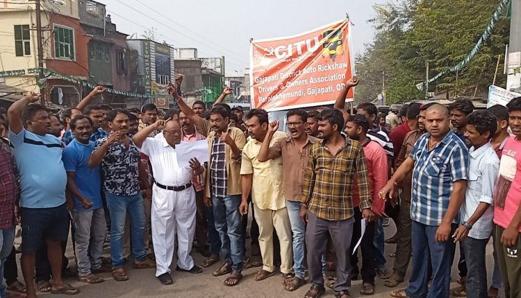 ପାରଳାଖେମୁଣ୍ଡି : ଗଜପତି ଜିଲ୍ଲା ସଦର ମହକୁମା ପାରଳାଖେମୁଣ୍ଡି ଠାରେ ଗଜପତି ଜିଲ୍ଲା ଅଟୋ ରିକ୍ସା ଚାଳକ ଓ ମାଲିକ ସଙ୍ଘ ତରଫରୁ ହାଇସ୍କୁଲ ଛକଠାରୁ ଶତାଧିକ ଅଟୋ ରିକ୍ସା ଡ୍ରାଇଭର ନିଜର ଅଟୋ ଗୁଡ଼ିକ ଧରି ବିରାଟ ଶୋଭାଯାତ୍ରାରେ ସହର ପରିକ୍ରମା କରି ଜିଲ୍ଲାପାଳଙ୍କ କାର୍ଯ୍ୟାଳୟ ସମ୍ମୁଖରେ ବିକ୍ଷୋଭ ପ୍ରଦର୍ଶନ ଓ ପ୍ରତିବାଦ କରିଥିଲେ । ଜିଲ୍ଲା ପ୍ରଶାସନ ଜରିଆରେ ମୁଖ୍ୟମନ୍ତ୍ରୀଙ୍କ ଉଦ୍ଦେଶ୍ୟରେ ଏକ ଦାବିପତ୍ର ପ୍ରଦାନ କରିଥିଲେ । ପରେ ଆଞ୍ଚଳିକ ପରିବହନ କାର୍ଯ୍ୟାଳୟରେ ପହଞ୍ଚି ଏକ ସ୍ମାରକପତ୍ର ପ୍ରଦାନ କରିବା ସହିତ ବିଭିନ୍ନ ଅଧିକାରୀଙ୍କ ବିରୋଧରେ ସ୍ଲୋଗାନ ଦେଇ ବିକ୍ଷୋଭ ପ୍ରଦର୍ଶନ କରିବା ସହ ମୁଖ୍ୟରାସ୍ତାକୁ ଅବରୋଧ କରିଥିଲେ । ଆନ୍ଧ୍ର- ଓଡ଼ିଶା ସୀମାବର୍ତ୍ତୀ ଅଞ୍ଚଳରେ ଅଟୋ ଚଳାଇ ଶତାଧିକ ପରିବାର ଜୀବିକା ନିର୍ବାହ କରୁଥିବା ବେଳେ ପରିବହନ ବିଭାଗ ପକ୍ଷରୁ ପରମିଟ ବାବଦକୁ ମାତ୍ରାଧିକ ଅର୍ଥ ଆଦାୟ କରୁଥିବା ସହ ଅକାରଣରେ ରାସ୍ତା ଘାଟରେ ଅଟୋ ଅଟକାଇ ବେଆଇନ ଚାଲାଣ କରୁଥିବା ଅଭିଯୋଗ କରିଛନ୍ତି ଅଟୋ ଚାଳକ ସଙ୍ଘ । ଗଜପତି ଆରଟିଓ ଏବଂ କର୍ମଚାରୀଙ୍କ ଦୁର୍ନୀତି ବିରୋଧରେ ବିକ୍ଷୋଭ ପ୍ରଦର୍ଶନ କରିଛନ୍ତି ଶହଶହ ଅଟୋ ଚାଳକ ।