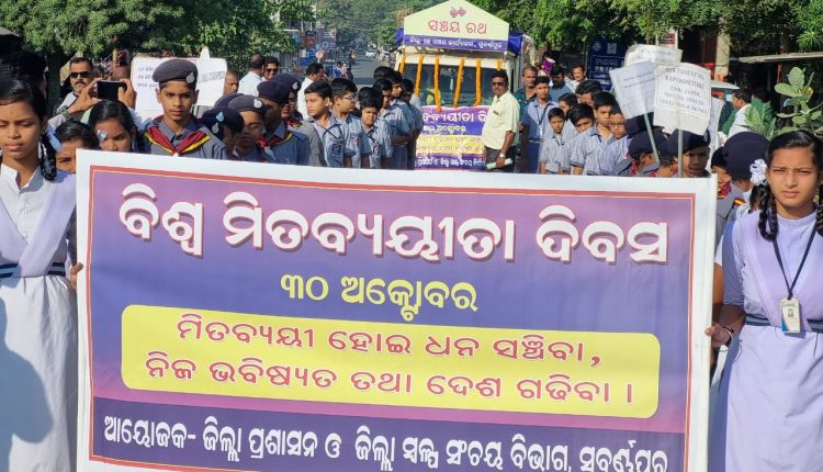 ସୁବର୍ଣ୍ଣପୁର :ଆର୍ଥିକ ଓ ସାମାଜିକ ନିରାପତ୍ତାକୁ ସୁଦୃଢ କରିବା ସହ ସଂଚୟକୁ ସୁନିଶ୍ଚିତ କରିବା ବାର୍ତ୍ତାରେ ଆଜି ସୁବର୍ଣ୍ଣପୁର ଠାରେ ବିଶ୍ୱ ମିତବ୍ୟୟିତା ଦିବସ ପାଳିତ ହୋଇଯାଇଛି । ଭବିଷ୍ୟତକୁ ନଜରରେ ରଖି କଷ୍ଟୋପାର୍ଜିତ ଅର୍ଥର ସଂଚୟ ଆତ୍ମନିର୍ଭର ହେବାକୁ ପ୍ରବର୍ତ୍ତେଇ ଥାଏ ବୋଲି ଜିଲ୍ଲାପାଳ ଅବୋଲି ସୁନିଲ ନରୱଣେ ଓ ଅତିରିକ୍ତ ଜିଲ୍ଲାପାଳ ସୂର୍ଯ୍ୟ ନାରାୟଣ ଦାଶ ଅତିଥିଭାବେ ଯୋଗଦେଇ ମତବ୍ୟକ୍ତ କରିଛନ୍ତି । ଆଜିର ବ୍ୟୟବହୁଳ ସମୟରେ ମିତବ୍ୟୟିତା ଅପରିହାର୍ଯ୍ୟ ହୋଇ ପଡିଥିବାବେଳେ ପ୍ରଚଳିତ ସ୍ୱଳ୍ପ ସଂଚୟ ଯୋଜନାକୁ ନେଇ ଜନ ଜାଗରଣ ଉପରେ ଗୁରୁତ୍ୱାରୋପ କରିଥିଲେ । ଭାରପ୍ରାପ୍ତ ଜିଲ୍ଲା ସ୍ୱଳ୍ପ ସଂଚୟ ଅଧିକାରୀ ଅଶ୍ୱିନୀ କୁମାର ଭୋଇଙ୍କ ତତ୍ତ୍ୱାବଧାନରେ ପରିଚାଳିତ ସଚେତନତା ଶୋଭାଯାତ୍ରା ତଥା ସଂଚୟ ରଥ ପରିକ୍ରମା କାର୍ଯ୍ୟକ୍ରମରେ ମହାରାଜ ହାଇସ୍କୁଲ, ସରକାରୀ ବାଳିକା ହାଇସ୍କୁଲ, ସାହାରା ଟ୍ରଷ୍ଟ ହାଇସ୍କୁଲର ଏନସିସି, ସ୍କାଉଟ, ଗାଇଡ଼, ଛାତ୍ରଛାତ୍ରୀଙ୍କ ଦ୍ୱାରା ଦିବସ ଅବସରରେ ସଚେତନତା ରାଲି ସହର ପରିକ୍ରମା କରିଥିବା ବେଳେ ସଂଚୟ ରଥ ଜିଲ୍ଲାର ବିଭିନ୍ନ ବ୍ଲକ ପରିକ୍ରମା କରି ଦୃଶ୍ୟଶ୍ରାବ୍ୟ ମାଧ୍ୟମରେ ଜଣଜାଗରଣ ସୃଷ୍ଟି କରିବ । ଅନୁଷ୍ଠିତ ଶୋଭାଯାତ୍ରା ଓ ସଂଚୟ ରଥକୁ ମାନନୀୟ ଜିଲ୍ଲାପାଳ ଶ୍ରୀମତୀ ନରୱଣେ ସହର ସ୍ଥିତ ଆମ୍ବେଦକର ଛକ ଠାରେ ସବୁଜ ପତାକା ପ୍ରଦର୍ଶନ ପୂର୍ବକ ଶୁଭାରମ୍ଭ କରିଥିଲେ । ଏହି କାର୍ଯ୍ୟକ୍ରମ ଅବସରରେ ଜିଲ୍ଲାର ପୋଷ୍ଟାଲ ଏଜେଣ୍ଟ, ଶିକ୍ଷକ ଶିକ୍ଷୟତ୍ରୀ, ବୁଦ୍ଧିଜୀବୀ, ଜିଲ୍ଳା ସ୍ତରୀୟ ଗଣମାଧ୍ୟମ ପ୍ରତିନିଧି ବୃନ୍ଦ ଯୋଗଦାନ କରିଥିଲେ । ବିଭଗୀୟ କର୍ମଚାରୀ ଦୁଃଖିଶ୍ୟାମ ସେଠୀ, ସଞ୍ଜୟ ବାରିକ ପ୍ରମୁଖ କାର୍ଯ୍ୟକ୍ରମରେ ସହଯୋଗ କରିଥିଲେ ।