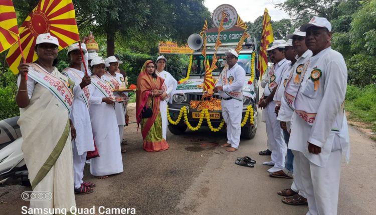 ସୁବର୍ଣ୍ଣପୁର: ସୋନପୁରରେ ଆଜି ଆତ୍ମ ନିର୍ଭର କୃଷକ ଅଭିଯାନ ରଥ ଶୁଭ ଉଦଘାଟନ ସୋନପୁର ପୌର ପରିଷଦ ଅଧ୍ୟକ୍ଷା ତାମସୀ ତାମସ୍ମିତା ନାୟକଙ୍କ ଦ୍ୱାରା ଅନୁଷ୍ଠିତ ହୋଇଛି । ଏହା ୧୨ ଅକ୍ଟୋବରରୁ ୨୧ ଅକ୍ଟୋବର ପର୍ଯ୍ୟନ୍ତ ଜିଲ୍ଲାର ବିଭିନ୍ନ ଅଞ୍ଚଳକୁ ଗସ୍ତ କରି ସଚେତନତାର ବାର୍ତ୍ତା ପହଞ୍ଚାଇବ । ଏହି ୧୦ଦିନ ବ୍ୟାପୀ ଚାଲିବାକୁ ଥିବା ଅଭିଯାନରେ ୧୪ ଟି ପଞ୍ଚାୟତରର ୧୨୦ଟି ଗାଁକୁ ଯିବ । ଏହି ଅଭିଯାନର ଲକ୍ଷ୍ୟ ହେଉଛି ସ୍ୱର୍ଣ୍ଣିମ ଭାରତର ପରିକଳ୍ପନା ସହିତ କୃଷକମାନଙ୍କ ଆର୍ଥିକ, ସାମାଜିକ ତଥା ମାନସିକ ସ୍ଥିତିର ଉନ୍ନତି ଓ ସଶକ୍ତିକରଣ ତଥା ଆତ୍ମନିର୍ଭର ହେବା ପାଇଁ ସଚେତନ କରିବା ହିଁ ମୂଳଲକ୍ଷ୍ୟ ବୋଲି ଆୟୋଜକ ଅନୁଷ୍ଠାନର ଭଉଣୀ ଓ ଭାଇଙ୍କ ସୁତ୍ରରୁ ପ୍ରକାଶ ।