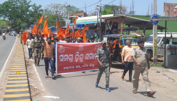 କଣ୍ଟାମାଳ : ଗତ ୧୨ ତାରିଖରେ ସମ୍ବଲପୁରଠାରେ ହନୁମାନ ଭକ୍ତଙ୍କ ଉପରେ ଯେଭଳି କ୍ରୁରତାପୂର୍ଣ୍ଣ ଆକ୍ରମଣ ଏବଂ ଚଉଦ ତାରିଖରେ ଜୈନିକ ବନବାସୀ ଯୁବକଙ୍କୁ ହତ୍ୟା କରାଗଲା ଏହା ସମ୍ପୂର୍ଣ୍ଣ ଦୁର୍ଭାଗ୍ୟଜନକ । ଶୋଭାଯାତ୍ରା ସମୟରେ ଭକ୍ତ ମାନଙ୍କ ଉପରେ ସୁନିୟୋଜିତ ଆକ୍ରମଣ ଓ ପ୍ରଶାସନିକ ସ୍ଥାଣୁତା ଭାରତୀୟ ଭଳି ରାଷ୍ଟ୍ରରେ ଧାର୍ମିକ ପ୍ରତି ନାଗରିକଙ୍କ ଆସ୍ଥା, ବିଶ୍ୱାସ ଓ ଧାର୍ମିକ ସ୍ୱତନ୍ତ୍ରତା ପ୍ରତି କୁଠାରଘାତ କରୁଛି ବୋଲି ଅଭିଯୋଗ କରି ଆଜି କଣ୍ଟାମାଳ ବ୍ଲକ ହିନ୍ଦୁ ସମାଜ ତରଫରୁ ଏକ ବିରାଟ ଶୋଭାଯାତ୍ରା ଅନୁଷ୍ଠିତ ହୋଇଯାଇଛି ।