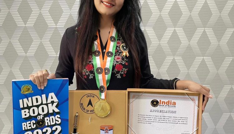 ଇଣ୍ଡିଆ ବୁକ୍‌ ଅଫ୍‌ ରେକର୍ଡସରେ ଚିତ୍ରଶିଳ୍ପୀ ସୁଚିସ୍ମିତା: କାଚ ବୋତଲରେ ସ୍ପଞ୍ଜ ଆକ୍ରିଲିକ୍‌ ପେଣ୍ଟିଂ