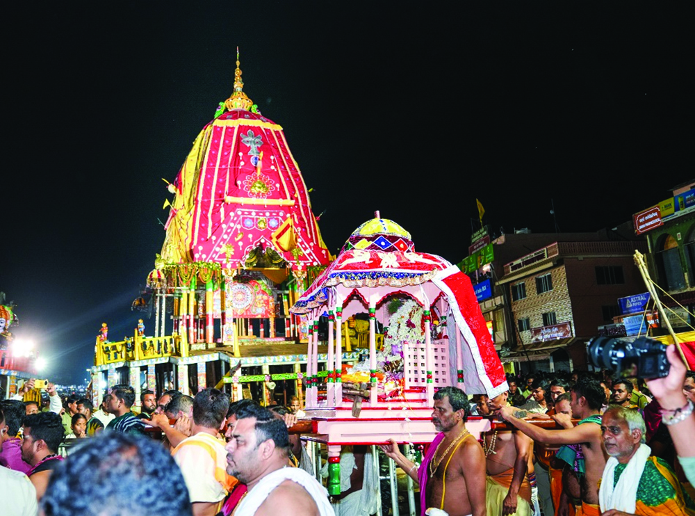 ଭଣ୍ଡାର ଘରେ ବିଜେ ହୋଇଥିବା ମା’ ଲକ୍ଷ୍ମୀ ଠାକୁରାଣୀଙ୍କୁ ସ୍ୱତନ୍ତ୍ର ମାଜଣା ଓ ବନକଲାଗି କରାଯାଇ ନୂତନ ପାଟବସ୍ତ୍ର ଓ ସ୍ୱର୍ଣ୍ଣାଳଙ୍କାରରେ ସୁଶୋଭିତ କରାଯାଇଥିଲା । ସେବକ ଓ ଭକ୍ତଙ୍କ ଗହଣରେ ଶ୍ରୀମନ୍ଦିରରୁ ବାହାରି ମହାଲକ୍ଷ୍ମୀ ଶ୍ରୀଗୁଣ୍ଡିଚା ଘରେ ବିଜେ ହୋଇଥିଲେ । ଗୁଣ୍ଡିଚା ଘର ସମ୍ମୁଖରେ ପହଞ୍ଚିବାରେ ଠାକୁରାଣୀଙ୍କୁ ପ୍ରସାଦ ଲାଗି, ବନ୍ଦାପନା, ଚାମର ଓ ଆଲଟ ସେବା ଅର୍ପଣ କରାଯାଇଥିଲା । ଘଷା, ବିଡ଼ିଆ, ଦହିପଟି ମଣୋହି କରାଯାଇଥିଲା । ଇତି ମଧ୍ୟରେ ଆଡ଼ପ ମଣ୍ଡପରେ ସନ୍ଧ୍ୟାଧୂପ ନୀତି ହେଉଥାଏ । ରଥ ନିକଟରୁ ମା’ଲକ୍ଷ୍ମୀ ଶ୍ରୀଗୁଣ୍ଡିଚା ମନ୍ଦିର ଜଗମୋହନର ଜୟବିଜୟ ଦ୍ୱାରଠାରେ ପହଞ୍ଚିଥିଲେ । ସେବକମାନେ ମହାପ୍ରଭୁଙ୍କ ଶ୍ରୀଅଙ୍ଗ ଲାଗି ଆଜ୍ଞାମାଳ ମହାଲକ୍ଷ୍ମୀଙ୍କୁ ଲାଗି କରିଥିଲେ । ଏହାପରେ ବିଧି ମୁତାବକ ମହାପ୍ରଭୁଙ୍କ ଦ୍ୱାର ବନ୍ଦ ହୋଇଥିଲା । ନୀତି ସାରି ଠାକୁରାଣୀ ରାଗ ତମତମ ହୋଇ ଶ୍ରୀଗୁଣ୍ଡିଚା ଘର ନାକଚଣା ଦ୍ୱାର ଦେଇ ବାହାରିବା ସମୟରେ ଠାକୁରାଣୀଙ୍କୁ ଦହିପଟି ମଣୋହି ଓ ବନ୍ଦାପନା କରାଯାଇଥିଲା । ତେବେ ରାତିକୁ ଗୁଣ୍ଡିଚା ଘରେ ମହାପ୍ରଭୁଙ୍କ ନୀତିରେ ସାମାନ୍ୟ ସୁଧାର ଆସିଥିଲା। ଆଜି ତିନିରଥକୁ ଦକ୍ଷିଣମୋଡ କରାଯିବା ସହ ବାହୁଡା ଯାତ୍ରା ପାଇଁ ପ୍ରସ୍ତୁତି ଆରମ୍ଭ ହେବ ।