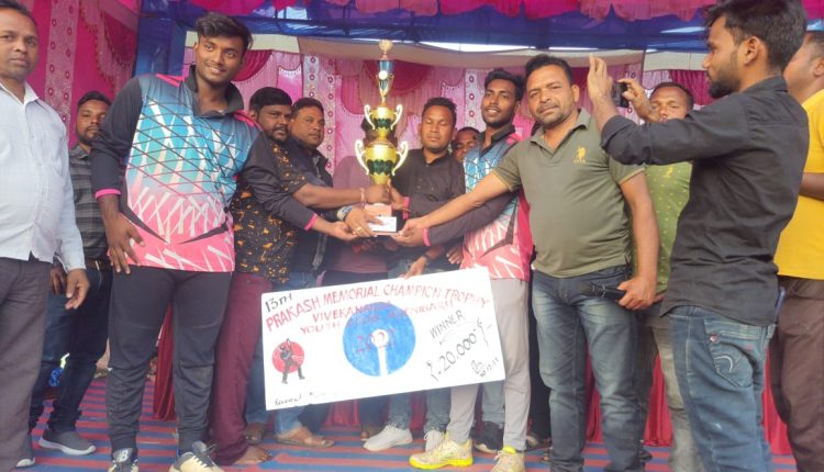 ବୌଦ୍ଧ : ବୌଦ୍ଧ ଜିଲ୍ଲା ହରଭଙ୍ଗା ବ୍ଲକ ଆଡେଣିଗଡ ସ୍ୱାମୀ ବିବେକାନନ୍ଦ ଯୁବକ ସଂଘ ଦ୍ୱାରା ଆୟୋଜିତ ୧୩ତମ ପ୍ରକାଶ ସ୍ମାରକ କ୍ରିକେଟ ପ୍ରତିଯୋଗିତା ଆଜି ଉଦ୍ଯାପିତ ହୋଇଯାଇଛି । ଫାଇନାଲ ମ୍ୟାଚରେ ପୁରୁଣାକଟକ ଓ ଫୁଲବାଣୀ ପିଙ୍କ ଡ୍ରାଗନ ମୁହାମୁହିଁ ହୋଇଥିଲେ । ଏଥିରେ ଫୁଲବାଣୀ ଦଳ ବିଜୟୀ ହୋଇ ଏହି ଟୁର୍ଣ୍ଣାମେଣ୍ଟର ଚାମ୍ପିୟନ ଆଖ୍ୟା ଅର୍ଜନ କରିଥିଲା । ଏହି ପ୍ରତିଯୋଗିତାରେ ୧୬ଟି ଦଳ ଅଂଶଗ୍ରହଣ କରିଥିଲେ । ଏହା ଚଳିତ ୨୧ ତାରିଖରୁ ଆରମ୍ଭ ହୋଇଥିବା ବେଳେ ଆଜି ଏହା ଉଦ୍ଯାପିତ ହୋଇଥିଲା । ଚାମ୍ପିୟନ ଫୁଲବାଣୀ ଦଳକୁ ୨୦ହଜାର ଓ ରନର୍ସ ଅଫ ଦଳ ପୁରୁଣାକଟକକୁ ୧୫ ହଜାର ଟଙ୍କାର ପୁରସ୍କାର ରାଶି ପ୍ରଦାନ କରାଯାଇଥିଲା ।