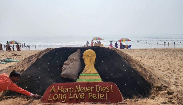 ପୁରୀ : ବ୍ରାଜିଲର କିମ୍ବଦନ୍ତୀ ପୁଟବଲ ଖେଳାଳି ପେଲେଙ୍କ ନିଧନରେ ଆନ୍ତର୍ଜାତିକ ବାଲୁକା ଶିଳ୍ପୀ ମାନସ କୁମାର ସାହୁ ବାଲୁକା କଳା ମାଧ୍ୟମରେ ଅଶ୍ରୁଳ ଶ୍ରଦ୍ଧାଞ୍ଜଳି ଜ୍ଞାପନ କରିଛନ୍ତି । ବାଲୁକା କଳାରେ ବିଶ୍ୱ ବିଖ୍ୟାତ ଫୁଟବଲ ଖେଳାଳି ପେଲେଙ୍କ ପ୍ରତିମୂର୍ତ୍ତି ନିର୍ମାଣ କରିଛନ୍ତି ଆନ୍ତର୍ଜାତିକ ବାଲୁକା ଶିଳ୍ପୀ ମାନସ କୁମାର ସାହୁ । ଏହି ବାଲୁକା ମୂର୍ତ୍ତିଟି ୧୫ ଫୁଟ ଓସାର ବିଶିଷ୍ଟ ଏବଂ ଏଥିରେ ୧୫ ଟନ ବାଲି ଉପଯୋଗ କରାଯାଇଛି । ଏହାକୁ ନିର୍ମାଣ କରିବାକୁ ମାନସ ସାହୁଙ୍କୁ ୪ ଘଣ୍ଟା ସମୟ ଲାଗିଥିଲା । ଏଥିରେ ସେ” A Hero Never Dies! Long Live Pele!ର ବାର୍ତ୍ତା ଦେଇଛନ୍ତି ।