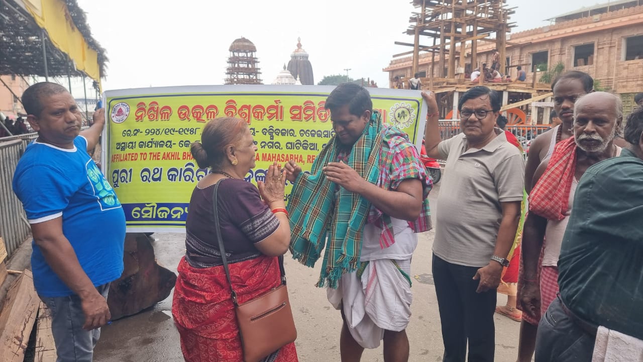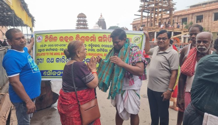 ରଥ କାରୀଗରଙ୍କୁ ଉପଢୌକନ ପ୍ରଦାନ ପୂର୍ବକ ସମ୍ବର୍ଦ୍ଧନା