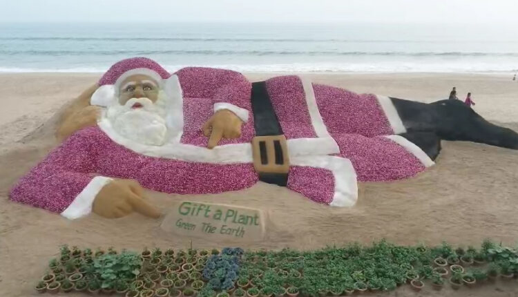 ପୁରୀ : ଖ୍ରୀଷ୍ଟମାସ ଅବସରରେ ବାଲୁକାକଳାରେ ଗିଫ୍ଟ ଏ ପ୍ଲାଣ୍ଟ , ଗ୍ରୀନ ଦ ଆର୍ଥର ବାର୍ତ୍ତା ।ପୁରୀ ବେଳାଭୂମିରେ ବାଲୁକାଶିଳ୍ପୀ ପଦ୍ମଶ୍ରୀ ସୁଦର୍ଶନ ଗଢ଼ିଛନ୍ତି ବିଶ୍ୱର ସବୁଠାରୁ ବଡ ସାଣ୍ଟା କ୍ଲଜ୍ । ଯେଉଁଥିରେ ପ୍ରାୟ ୨ ଟନ୍ ଓଜନର ପିଆଜର ବ୍ୟବହାର ହୋଇଛି ।୧୦୦ ଫୁଟ୍ ଲମ୍ବା ଓ ୨୦ ଫୁଟ୍ ଉଚ୍ଚତାର ଏହି ବାଲୁକା କଳାକୁ ପ୍ରସ୍ତୁତ କରିବା ପାଇଁ ସୁଦର୍ଶନ ଓ ତାଙ୍କ ବାଲୁକାକଳା ଅନୁଷ୍ଠାନର ୩୧ ଜଣ ପିଲାଙ୍କୁ ପ୍ରାୟ ୮ ଘଣ୍ଟା ସମୟ ଲାଗିଥିଲା । କ୍ରିସମାସ ଅବସରରେ ସାଂଟାକ୍ଲଜ୍ ଜରିଆରେ ବିଭିନ୍ନ ଉପହାର ଦିଆଯାଉଥିବା ବେଳେ ଏହି ବାଲୁକାକଳା ମାଧ୍ୟମରେ ପୃଥିବୀକୁ ସମସ୍ତେ ଗୋଟିଏ ଗୋଟିଏ ବୃକ୍ଷ ଉପହାର ଦେବାର ରହିଛି ସୁନ୍ଦର ବାର୍ତ୍ତା । ବାଲୁକା କଳାଟିରେ ସାଂଟାକ୍ଲଜ ନିଜେ ପୃଥିବୀକୁ ସବୁଜ କରିବା ପାଇଁ ଉପହାର ସ୍ୱରୂପ ଗୋଟିଏ ଗୋଟିଏ ବୃକ୍ଷରୋପଣ କରିବାକୁ ବାର୍ତ୍ତା ଦେବାର ଦେଖାଦେଇଛି ।ଏହି ଅବସରରେ ସୁଦର୍ଶନଙ୍କ ସମ୍ମାନ ସୂଚୀରେ ଯୋଡ଼ି ହେଇଛି ଆଉ ଏକ ନୂଆ ଆୱାର୍ଡ଼ world record books of India । ଯାହାକୁ ନେଇ ଖୁସି ବ୍ୟକ୍ତ କରିଛନ୍ତି ସୁଦର୍ଶନ ।