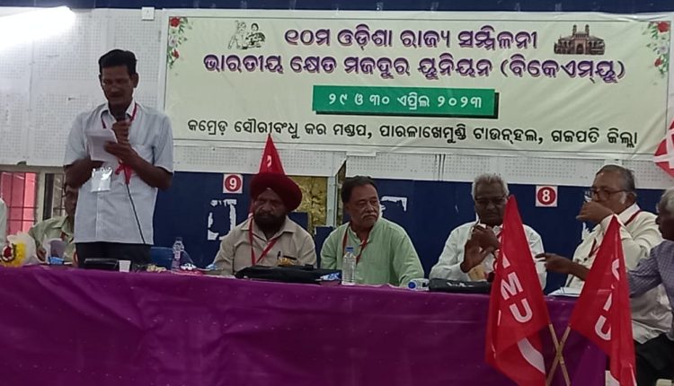 ପାରଳାଖେମୁଣ୍ଡି: ଦେଶର ସର୍ବ ପ୍ରଥମ କୃଷି ଓ ଗ୍ରାମିଣ ଶ୍ରମିକ ସଂଗଠନ “ଭାରତୀୟ କ୍ଷେତ ମଜଦୁର ୟୁନିୟନ’ର ୧୦ମ ରାଜ୍ୟ ସମ୍ମିଳନୀ ଆଜି ଗଜପତି ଜିଲ୍ଲା ସଦର ମହକୁମା ପାରଳାଖେମୁଣ୍ଡି ଟାଉନ ହଲଠାରେ ଉଦଘାଟିତ ହୋଇଯାଇଛି । ଆଜି ପୂର୍ବାହ୍ନ ୧୧ଟାରେ ବିକେଏମୟୁର ଲଢୁଆ ଲାଲ ପତାକାକୁ ବିକେଏମୟୁ ରାଜ୍ୟ ସମ୍ପାଦକ କମ୍ରେଡ୍ ସୁର ଜେନା ଉତ୍ତୋଳନ କଲା ପରେ ଏକ ବର୍ଣ୍ଣାଢ୍ୟ ଶୋଭାଯାତ୍ରା ସହର ପରିକ୍ରମା କରି ଏହି ସମ୍ମିଳନୀର ଖୋଲା ଅଧିବେଶନ ବିକେଏମୟୁ ରାଜ୍ୟ ସଭାପତି କମ୍ରେଡ୍ ଜନ୍ନା ସୁବାସ ରାଓଙ୍କ ଅଧ୍ୟକ୍ଷତାରେ ଅନୁଷ୍ଠିତ ହୋଇଅଛି । ଏହି ସମ୍ମିଳନୀକୁ ଭାରତୀୟ କ୍ଷେତ ମଜଦୁର ୟୁନିୟନର ସର୍ବ ଭାରତୀୟ ସାଧାରଣ ସମ୍ପାଦକ କମ୍ରେଡ୍ ଗୁଲଜାର ସିଂହ ଗୋରିଆ ଉଦଘାଟନ କରି ସମଗ୍ର ଦେଶର କୃଷି କ୍ଷେତ୍ର ଗ୍ରାମୀଣ କ୍ଷେତ୍ରରେ ଶ୍ରମ କରି ଜୀବିକା ଅର୍ଜନ କରୁଥିବା ଖେତ ମଜଦୂରଙ୍କ ଦୈନିକ ସର୍ବନିମ୍ନ ମଜୁରୀ ୭ଶହ ଟଙ୍କା, ଖେତ ମଜଦୁରଙ୍କ ସାମାଜିକ ନିରାପତ୍ତା ପାଇଁ କେନ୍ଦ୍ରୀୟ ଆଇନ ପ୍ରଣୟନ, ଆଦିବାସୀ, ଦଳିତ ଓ ପଛୁଆ ବର୍ଗର ଭୁମିହୀନ ଓ ଗୃହ ହୀନଙ୍କୁ ଘରଡିହ ଓ ଦଖଲ ସରକାରୀ ଜମି ଓ ଜଙ୍ଗଲ ଜମିର ପଟ୍ଟା ପ୍ରଦାନ, ପ୍ରତ୍ୟେକ କ୍ଷେତ ମଜଦୁରଙ୍କ ଆବାସ ଗୃହ ନିର୍ମାଣ ପାଇଁ ଅନ୍ୟୁନ ୫ଲକ୍ଷ ଟଙ୍କାର ଆବାସ ସହାୟତା ପ୍ରଦାନ, ମହାତ୍ମା ଗାନ୍ଧୀ ଗ୍ରାମୀଣ ନିଶ୍ଚିତ କର୍ମ ନିଯୁକ୍ତି ଯୋଜନାରେ ୨ଶହ ଦିନର ନିଶ୍ଚିତ କର୍ମ ନିଯୁକ୍ତି, ନାମ ମାତ୍ର, କ୍ଷୁଦ୍ର ଓ ମଧ୍ୟମ କୃଷକଙ୍କ କୃଷି କ୍ଷେତ୍ରର ଶ୍ରମକୁ ମହାତ୍ମା ଗାନ୍ଧୀ ଜାତୀୟ ଗ୍ରାମୀଣ ନିଶ୍ଚିତ କର୍ମ ନିଯୁକ୍ତି ଯୋଜନାରେ ସାମିଲ କରି କୃଷି ଓ କୃଷକଙ୍କୁ ସହାୟତା ପ୍ରଦାନ, ବାର୍ଦ୍ଧକ୍ୟ ହେଲେ ଖେତ ମଜଦୁରଙ୍କୁ ବାର୍ଦ୍ଧକ୍ୟ ଭତ୍ତା ବାବଦରେ ମାସିକ ୫ହଜାର ଟଙ୍କାର ଭତ୍ତା ପ୍ରଦାନ, ସାର୍ବଜନୀନ ବଣ୍ଟନ ବ୍ୟବସ୍ଥାକୁ ଫଳପ୍ରଦ ଓ ସକ୍ରୀୟ କରିବା ପାଇଁ ସମସ୍ତ ଅତ୍ୟାବଶ୍ୟକୀୟ ସାମଗ୍ରୀ ସୁଲଭ ମୂଲ୍ୟରେ ରାସନ ଭାବେ ଯୋଗାଣ, ଦର ଦାମ ବୃଦ୍ଧି ବନ୍ଦ କର ଦାବିରେ ଦେଶବ୍ୟାପୀ ଶକ୍ତିଶାଳୀ ଆନ୍ଦୋଳନର ଆହ୍ୱାନ ଦେଇଥିଲେ । ଏହି ଖୋଲା ଅଧିବେଶନରେ ଭାରତୀୟ କମ୍ୟୁନିଷ୍ଟ ପାର୍ଟିର ରାଜ୍ୟ ସମ୍ପାଦକ କମ୍ରେଡ୍ ଅଭୟ ସାହୁ, ଅଖିଳ ଭାରତ କୃଷକ ସଭାର ସର୍ବ ଭାରତୀୟ ଉପସଭାପତି କମ୍ରେଡ୍ ଆଶିଷ କାନୁନଗୋ, ନିଖିଳ ଓଡିଶା ଏନ. ଆର୍.ଇ.ଜି.ଏ. ଶ୍ରମିକ ସଂଘର ରାଜ୍ୟ ସଭାପତି କମ୍ରେଡ୍ ଜୟନ୍ତ ଦାସ, ଏଆଇଟିୟୁସି ରାଜ୍ୟ ସାଧାରଣ ସମ୍ପାଦକ କମ୍ରେଡ୍ ବିଜୟ ଜେନା, ଆନ୍ଧ୍ର ପ୍ରଦେଶ ଖେତ ମଜଦୁର ୟୁନିୟନ ରାଜ୍ୟ ନେତା କମ୍ରେଡ୍ ଧର୍ମା ରାଓ,ଅଖିଳ ଭାରତ ଯୁବ ସଂଘର ରାଜ୍ୟ ସଭାପତି କମ୍ରେଡ୍ ପ୍ରଦୀପ ସେଠୀ, ଓଡିଶା କ୍ଷେତ ମଜଦୁର ୟୁନିୟନର ରାଜ୍ୟ ସାଧାରଣ ସମ୍ପାଦକ କଃ ନୀର୍ମଳ ନାୟକ ଏବଂ ରାଜ୍ୟ ଉପ ସଭାପତି ବିଦ୍ୟଧର ଜେନା ପ୍ରମୁଖ ଏହି ସମ୍ମିଳନୀର ସଫଳତା ପାଇଁ ଉଦବୋଧନ ଦେଇଛନ୍ତି ।