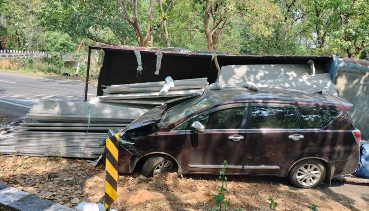 ହରଭଙ୍ଗା : ଖୋର୍ଦ୍ଧା -ବଲାଙ୍ଗୀର ୫୭ ନମ୍ବର ଜାତୀୟ ରାଜପଥ ପୁରୁଣା କଟକ ଥାନା ଆଡେଣିଗଡ ଫାଣ୍ଡି ଅଧିନସ୍ତ ମାଧପୁର ଢ଼ାବା ନିକଟରେ ଏକ ଆଜବେଷ୍ଟ ବୋଝଇ ଟ୍ରକ ଭାରସାମ୍ୟ ହରାଇବାରୁ ଏକ କାର ଉପରେ ମାଡି ବସିଥିବା ଦେଖିବାକୁ ମିଳିଥିବା ବେଳେ ଅଳ୍ପକେ ବଡ଼ ଦୁର୍ଘଟଣାରୁ ସମସ୍ତ ଯାତ୍ରୀ ଓ ଟ୍ରକ ଚାଳକ ବର୍ତ୍ତି ଯାଇଥିବା ଜଣାପଡିଛି । ସୂଚନା ମତେ ଆଜବେଷ୍ଟ ବୋଝେଇ ହୋଇ ଭୁବନେଶ୍ୱର ଅଭିମୁଖେ ଯାଉଥିବା(ଙଜ ୦୫ଇ ଇ ୮୨୯୨ ) ଟ୍ରକଟି ଚାଳକଙ୍କ ଅସବାଧନତା ପାଇଁ ଭାରସାମ୍ୟ ହରାଇଥିଲା, ଠିକ ସେହି ସମୟରେ ବିପରୀତ ଦିଗରୁ ଆସୁଥିବା(ଙଊ ୧୭କ୩୪୭୭)କାରଟି ସୋହେଲା ଅଭିମୁଖେ ଯାଉଥିବା ବେଳେ ଟ୍ରକ ଓ କାର ପାସ ହେଉଥିବା ସମୟରେ ହଠାତ ଟ୍ରକରୁ ଆଜବେଷ୍ଟ ଗୁଡିକ ପଡିବା ସହ ଟ୍ରକ ମଧ୍ୟ ଓଲଟି କାର ଉପରେ ପଡି ଯାଇଥିଲା । ଫଳରେ କାର ଉପରେ ଆଜବେଷ୍ଟ ପଡି ଗାଡିଟି ଚାପି ହୋଇ ନଷ୍ଟ ହୋଇଥିବା ବେଳେ ଗାଡିର ଥିବା ୪ଜଣ ଯାତ୍ରୀ ଓ ଟ୍ରକ ଚାଳକ ଅଳ୍ପକେ ବଡ଼ ଦୁର୍ଘଟଣାରୁ ବର୍ତ୍ତି ଯାଇଥିବା ଜଣାପଡିଛି । ଏଥିରେ କାହାର କୌଣସି କ୍ଷୟକ୍ଷତି ହୋଇନଥିବା ବେଳେ ଦୁର୍ଘଟଣାକୁ ନେଇ ଆଡେଣିଗଡ଼ ଫାଣ୍ଡି ପୋଲିସ ପହଁଚି ଉଭୟ ଗାଡିକୁ ଜବତ କରି ଦୁର୍ଘଟଣାର ତଦନ୍ତ ଜାରି ରଖିଥିବା ନେଇ ଏଏସଆଇ ବ୍ରହ୍ମାନନ୍ଦ ପ୍ରଧାନ ସୂଚନା ଦେଇଛନ୍ତି ।
