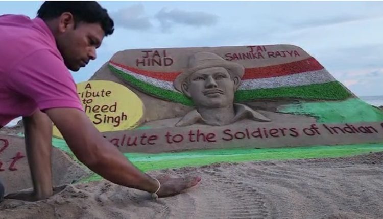 ଭଗତ ସିଂଙ୍କ ଜନ୍ମତିଥିରେ ମାନସ ସାହୁଙ୍କ ବାଲୁକା କଳା