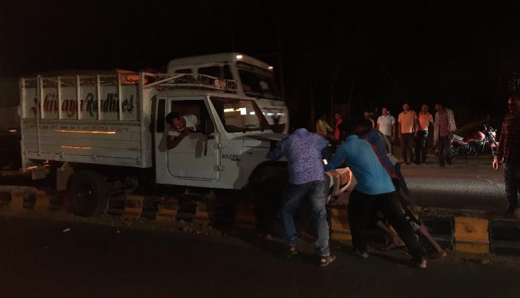 ଅଧାପନ୍ତରିଆ ଡିଭାଇଡର ଯୋଗୁଁ ପୁଣି ଫସିଲା ମିନି ଟ୍ରକ