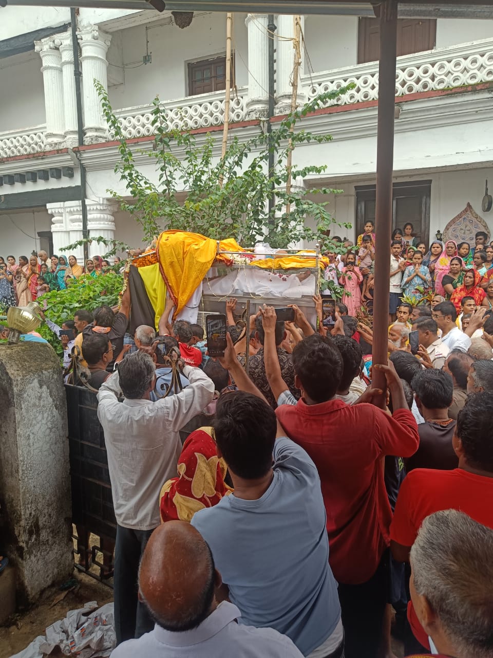 ଖଣ୍ଡପଡ଼ା :ଖଣ୍ଡପଡ଼ା ରାଜା ବିଭୂତିଭୂଷଣ ସିଂହ ମର୍ଦ୍ଦରାଜଙ୍କର ବୁଧବାର ରାତିରେ ପରଲୋକ ହୋଇଥିବା ବେଳେ ସର୍ବସାଧାରଣଙ୍କ ଅନ୍ତିମ ଦର୍ଶନ ନିମନ୍ତେ ତାଙ୍କର ପାର୍ଥିବ ଶରୀରକୁ ଖଣ୍ଡପଡ଼ା ରାଜବାଟି ପରିସରସ୍ଥିତ ଏକ କକ୍ଷରେ ରଖାଯାଇଥିଲା। ଶୁକ୍ରବାର ଦିବା ୧୨ଘଣ୍ଟା ସମୟରେଏକ ସୁସଜ୍ଜିତ ଯାନ ଯୋଗେ ରାଜାଙ୍କର ପାର୍ଥିବ ଶରୀରକୁ ଏକ ଶୋଭାଯାତ୍ରାରେ ସହର ପରିକ୍ରମା କରାଯାଇଥିଲା। ଖଣ୍ଡପଡ଼ା ସହରବାସୀ ଓ ଆଖପାଖ ଅଞ୍ଚଳରୁ ଶହଶହ ଜନସାଧାରଣ ଶୋଭାଯାତ୍ରାରେ ସାମିଲ ହୋଇ ଜନପ୍ରିୟ ନେତାଙ୍କୁ ଅଶ୍ରୁଳ ଶ୍ରଦ୍ଧାଞ୍ଜଳି ଜ୍ଞାପନ କରିଥିଲେ। ହରିବୋଲ ଓ ରାମନାମ ଧ୍ବନିରେ ଖଣ୍ଡପଡ଼ା ସହର ପ୍ରକମ୍ପିତ ହୋଇ ଉଠିଥିଲା।ଶୋଭାଯାତ୍ରାରେ ଅନ୍ୟ ମାନଙ୍କ ମଧ୍ୟରେ ପୂର୍ବତନ ବିଧାୟକ ସୌମ୍ୟରଞ୍ଜନ ପଟ୍ଟନାୟକ, ବିଶିଷ୍ଟ ଶିଶୁ ସାହିତ୍ୟିକ ଜିତେନ୍ଦ୍ର ନାରାୟଣ ଦାଶ, କଂଗ୍ରେସ ନେତ୍ରୀ ବିନୋଦିନୀ ମହାନ୍ତିଙ୍କ ସମେତ ବହୁ ମାନ୍ୟଗଣ୍ୟ ବ୍ୟକ୍ତିବିଶେଷ ,ରାଜ୍ୟ ଓ ରାଜ୍ୟ ବାହାରୁ ରାଜ ପରିବାରର ସଦସ୍ୟମାନେ ଶୋଭାଯାତ୍ରାରେ ସାମିଲ ହୋଇଥିଲେ।ଖଣ୍ଡପଡ଼ା ସହର ନିକଟସ୍ଥ ମା ଉମାଦେବୀ ଶ୍ମଶାନସ୍ଥଳରେ ରାଜକୀୟ ମର୍ଯ୍ୟାଦା ସହ ସ୍ବର୍ଗତ ରାଜାଙ୍କର ଶେଷକୃତ୍ୟ ସମ୍ପନ୍ନ ହୋଇଥିବା ଜଣାଯାଇଛି।ଖଣ୍ଡପଡ଼ା ରାଜ ପରିବାରର ପରମ୍ପରା ଅନୁଯାୟୀ ବ୍ରାହ୍ମଣ ପୁତ୍ର ନାରାୟଣ ଦାଶ ଶ୍ମଶାନସ୍ଥଳରେ ଉପସ୍ଥିତ ରହି ମୁଖାଗ୍ନି ଦେଇଥିଲେ। ଖଣ୍ଡପଡ଼ା ରାଜାଙ୍କ ପରଲୋକ ପରେ ତାଙ୍କର ପୁତ୍ର ସିଦ୍ଧାର୍ଥ ଶେଖର ସିଂହ ରାଜ ସିଂହାସନ ଆରୋହଣ ପରିପ୍ରେକ୍ଷୀରେ ପାରମ୍ପରିକ ପ୍ରଥାନୁଯାୟୀ ରାଜବାଟି ପରିସରରେ ଶୁକ୍ରବାର ସକାଳେ ରାଜଭିଷେକ କାର୍ଯ୍ୟକ୍ରମ ଅନୁଷ୍ଠିତ ହୋଇଥିଲା।ବ୍ରାହ୍ମଣ ସମାଜ ଓ ନଟବରପୁରଶାସନ ଗ୍ରାମସ୍ଥିତ ବେଦ ପାଠଶାଳାର ଛାତ୍ରମାନେ ଉପସ୍ଥିତ ରହି ବେଦ ପାଠ କରିଥିଲେ।