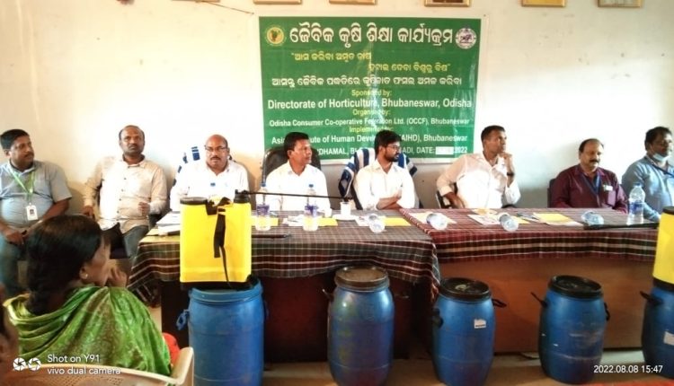 ବାଲିଗୁଡ଼ା : କନ୍ଧମାଳ ଜିଲ୍ଲା ଦାରିଙ୍ଗବାଡିବ୍ଲକ ଅନ୍ତର୍ଗତ ବ୍ରାହ୍ମଣୀଗାଁ ଥାନା ଅଞ୍ଚଳର ଆଠଗୋଟି ପଞ୍ଚାୟତ କାଟିଙ୍ଗିଆ, କୁମ୍ଭାରୀ ଗାଁ , ଝିଞ୍ଜିରିଗୁଡା, ଗଦାପୁର, ତାଜୁଙ୍ଗିଆ, ହତିମୁଣ୍ଡା, ସାରାମୁଳି ପଞ୍ଚାୟତର ଚାଷୀମାନଙ୍କୁ ନେଇ ଜୈବିକ ପଦ୍ଧତିରେ କୃଷିଜାତ ଫସଲ ଅମଳ କରିବାର ଶିକ୍ଷା କାର୍ଯ୍ୟକ୍ରମ ସ୍ଥାନୀୟ ରାଜୀବଗାନ୍ଧୀ ସେବାକେନ୍ଦ୍ର ଠାରେ ଅନୁଷ୍ଠିତ ହୋଇଯାଇଛି । ଓଡ଼ିଶା ସରକାରଙ୍କ କୃଷି ବିଭାଗର ସହାୟତାରେ ଓଡିଶା କଞ୍ଜୁମର କୋପେରେଟିଭ ଫେଡରେସନର ଓ ଆସିଆନ ଇନଷ୍ଟିଚ୍ୟୁଟ ଅଫ ହ୍ୟୁମାନ ଡେଭେଲୋପମେଣ୍ଟ ଭୁବନେଶ୍ୱରଙ୍କ ମିଳିତ ଉଦ୍ୟମରେ ଏହି କାର୍ଯ୍ୟକ୍ରମର ଆୟୋଜନ କରାଯାଇଥିଲା । ଅନୁଷ୍ଠାନର ସିଇଓ ସମୀର କୁମାର ବାରିକଙ୍କ ନେତୃତ୍ୱରେ ଆୟୋଜିତ କାର୍ଯ୍ୟକ୍ରମରେ ମୁଖ୍ୟ ଅତିଥି ଭାବେ କନ୍ଧମାଳ ଜିଲ୍ଲା ଉଦ୍ୟାନ କୃଷି ଉପ ନିର୍ଦ୍ଦେଶକ ମିହିର କୁମାର ସାମନ୍ତରାୟ ଓ ସମ୍ମାନିତ ଅତିଥି ଭାବେ ବାଲିଗୁଡା ଉଦ୍ୟାନ କୃଷି ସହକାରୀ ନିର୍ଦ୍ଦେଶକ ଦେବ ପ୍ରସାଦ ରାଉତରାୟ ଯୋଗ ଦେଇଥିଲେ । ଶ୍ରୀ ବାରିକ ଅଞ୍ଚଳର ବିଭିନ୍ନ ପଞ୍ଚାୟତରେ ପହଞ୍ଚି ଚାଷୀମାନେ ଆତ୍ମ ନିର୍ଭରଶୀଳ ହୋଇ କିପରି ନିଜେ ଜୈବିକ ସାର ପ୍ରସ୍ତୁତ କରିପାରିବେ ସେ ନେଇ ତାଲିମ ପ୍ରଦାନ କରିଥିଲେ । ବିଶେଷ କରି ଘନ ଜିବାମୃତ, ଜିବାମୃତ ,ଆଗ୍ନେୟାସ୍ତ୍ର ,ୱେଷ୍ଟ ଡ଼ି କମ୍‌ପୋଜର, ସଂଜୀବକ, ଗୋ ମୂତ୍ର ଆଦି ସାରର ପ୍ରସ୍ତୁତି କରଣ ଓ ଏହାର ପ୍ରୟୋଗ ସମ୍ପର୍କରେ ଚାଷୀ ମାନଙ୍କୁ ଶିକ୍ଷା ଦେଇଥିଲେ । ତିନି ଦିନ ଧରି ଚାଲିଥିବା ଏହି ଜୈବିକ କୃଷି ଶିକ୍ଷା କାର୍ଯ୍ୟକ୍ରମଟିର ଅନ୍ତିମ ଦିବସରେ ଆଠଗୋଟି ପଞ୍ଚାୟତର ଚାଷୀଙ୍କୁ ନେଇ ସୋମବାର ଦିନ ବ୍ରାହ୍ମଣୀଗାଁ ରାଜୀବ ଗାନ୍ଧୀ ସେବାକେନ୍ଦ୍ର ଠାରେ ଆୟୋଜିତ କାର୍ଯ୍ୟକ୍ରମରେ ବିଭାଗୀୟ ଅଧିକାରୀମାନେ ଉପସ୍ଥିତି ରହି ଚାଷୀମାନଙ୍କୁ ପରାମର୍ଶ ଦେବା ସହ ଚାଷ ଉପଯୋଗୀ ସାମଗ୍ରୀ ବିତରଣ କରିଥିଲେ । ଉକ୍ତ କାର୍ଯ୍ୟକ୍ରମ ଚାଲିଥିବା ସମୟରେ କନ୍ଧମାଳ ଜିଲ୍ଲାପାଳ ଆଶିଷ ଈଶ୍ୱର ପାଟିଲ ଅଚାନକ ଭାବେ ଗସ୍ତ କରି କୃଷକ ମାନଙ୍କୁ ତାଲିମ ସମ୍ପର୍କରେ ପଚାରି ବୁଝିଥିଲେ, ଜିଲ୍ଲାପାଳଙ୍କ ସହ ଉପଜିଲ୍ଲାପାଳ ଦୁଃଖ ବନ୍ଧୁ ନାୟକ,ବିଡ଼ିଓ ଗଦାଧର ପାତ୍ର, ତହସିଲଦାର ଚାର୍ଲସ ନାୟକ ପ୍ରମୁଖ ସାମିଲ ହୋଇଥିଲେ ।