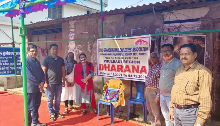 ଫୁଲବାଣୀ: କନ୍ଧମାଳ ଜିଲ୍ଲାର ଫୁଲବାଣୀ ଉତ୍କଳ ଗ୍ରାମୀଣ ବ୍ୟାଙ୍କ କର୍ମଚାରୀ ସଂଘ ତରଫରୁ ମ୍ୟାନଜେମେଣ୍ଟକୁ ୫ଦଫା ଦାବି ପୂରଣ ପାଇଁ ଅନୁରୋଧ କରାଯାଇଥିଲା । କିନ୍ତୁ ଦାବୀ ପୂରଣ ନକରି ଆଲୋଚନା ମଧ୍ୟ କଲେ ନାହିଁ । ଏବଂ ଆକ୍ରୋଶ ମୂଳକ ଭାବରେ ୧୦୦ ଜଣକୁ ବଦଳି କଲେ । ତେଣୁ ବର୍ତ୍ତମାନ ୨୩ ଦଫା ଦାବୀ ନେ଼ଇ ତା ୩୦.୧୧.୨୦୨୧ ରିଖ ଠାରୁ ଅନିର୍ଦ୍ଦିଷ୍ଟ କାଳ ପର୍ଯ୍ୟନ୍ତ ଅଂଚଳିକ କାର୍ଯ୍ୟାଳୟ ସମ୍ମୁଖରେ ଫୁଲବାଣୀର ସମସ୍ତ କର୍ମଚାରୀ ସଂଘ ତରଫରୁ ଧାରଣା ଦିଆଯାଇଛି । ଏହି ଧାରଣାରେ ସଂଘର ଉପସଭାପତି ବେଣୁଧର ସେଠୀ, ସହସମ୍ପାଦକ ବିବେକ ଅଭିଷେକ ରାଜୁ, ପଙ୍କଜ ଲୋଚନ ସ୍ୱାଇଁ ପ୍ରମୁଖ ଉପସ୍ଥିତ ଥିଲେ ।ତାଙ୍କର ଦାବି ଗୁଡିକ ମଧ୍ୟରେ ହୃସିକେଶ ପାତ୍ର, ଡିଭିଜନାଲ ସେକ୍ସନର ବେଆଇନ ନିଲମ୍ବନ ଆଦେଶର ସର୍ତ୍ତମୂଳକ ପ୍ରତ୍ୟାହାର, ସମସ୍ତ ଯୋଗ୍ୟ ମାମଲାର ନିର୍ଭରଶୀଳଙ୍କ ପ୍ରତି ଦୟାଳୁ ନିଯୁକ୍ତି, ୧୯୮୨ ଅନୁଯାୟୀ ୨୦.୧୨.୨୦୦୬ ପୂର୍ବରୁ ମୃତ ଦୟାଳୁ ନିଯୁକ୍ତି ଯୋଜନାରେ ଏନଆଇଟି ପୁରସ୍କାର ଅନୁଯାୟୀ ପ୍ରାରମ୍ଭିକ ଯୋଗଦାନ ତାରିଖରୁ ବରିଷ୍ଠ କର୍ମଚାରୀଙ୍କ ନିୟମିତକରଣ,ସମସ୍ତ ସାମାଜିକ ସୁରକ୍ଷା ସହିତ ବ୍ୟାଙ୍କର ଗ୍ରୁପ୍ ଡି କର୍ମଚାରୀ ଭାବରେ ସମସ୍ତ ପାର୍ଟ ଟାଇମ୍ କାଜୁଆଲ୍ / ଅସ୍ଥାୟୀ ଶ୍ରମିକମାନଙ୍କୁ ଚିହ୍ନଟ,ସମସ୍ତ କିରାଣୀ କର୍ମଚାରୀଙ୍କୁ ଏକକ ୱିଣ୍ଡୋ ଓପନିଟର୍ ଭତ୍ତା, ଡେପୁଟେସନ୍ ଉପରେ ହଲ୍ଟିଂ ଭତ୍ତାର କୌଣସି ଛାଡ଼ ନାହିଁ , ଅବସରର ପରବର୍ତ୍ତୀ ମାସରୁ ଟର୍ମିନାଲ୍ ସୁବିଧା ଏବଂ ପେନସନ୍ ପ୍ରଦାନ,୨୦୨୦ ର କର୍ମଚାରୀଙ୍କ ସର୍କୁଲାର୍ ୨ ର ପ୍ରତ୍ୟାହାର ଏବଂ ଏକ ସହମତ,ଆସୋସିଏସନ୍ ସହିତ ପରାମର୍ଶ କରି ସ୍ଥାନାନ୍ତର ନୀତି, ସୁନା ରୁଣ ପାଇଁ ବ୍ୟବସାୟର ଭଲ୍ୟୁମ୍ ନିର୍ବିଶେଷରେ ସମସ୍ତ ଶାଖା ପାଇଁ ୨ ଟି ସୁରକ୍ଷିତ ଯୋଗାଣ ୧୨ଟି ପୋଷ୍ଟର ବର୍ଗୀକରଣ (ଶାଖା ପରିଚାଳକ, ଆକାଉଣ୍ଟାଣ୍ଟ ଏବଂ ଫିଲ୍ଡ ଅଫିସର, ସପୋର୍ଟ ଅଫିସର) ମିତ୍ର କମିଟିର ସୁପାରିଶ ଅନୁଯାୟୀ ମ୍ୟାନ୍ ପାୱାର୍ ପ୍ଲାନିଂ, ନେଟୱାର୍କିଂ ଧାରଣାକୁ ପ୍ରତ୍ୟାହାର କରନ୍ତୁ,ସେମାନଙ୍କ କର୍ମକ୍ଷେତ୍ରରେ ମହିଳା କର୍ମଚାରୀଙ୍କ ପାଇଁ ଅଲଗା ଶୌଚାଳୟର ଯୋଗାଣ, ପଦୋନ୍ନତିରୁ ବାଧ୍ୟତାମୂଳକ ଲିମିଂ ଧାରଣା ପ୍ରତ୍ୟାହାର, ପଦୋନ୍ନତିରେ ସ୍ୱଚ୍ଛତା ବଜାୟ ରଖିବା ପାଇଁ ପଦୋନ୍ନତି ଚିହ୍ନର ଘୋଷଣା,ମୁଖ୍ୟ କାର୍ଯ୍ୟାଳୟରେ ଯୋଗାଯୋଗ ଅଧିକାରୀଙ୍କ ପୋଷ୍ଟିଂ, ସ୍ୱୀକୃତ ପ୍ରାପ୍ତ ଆସୋସିଏସନ୍ ଏବଂ ଏସସି / ଏସଟି କଲ୍ୟାଣ ପରିଷଦ ସହିତ ତ୍ରୟମାସିକ ସଂରଚନା ବୈଠକ ଏବଂ ଆସୋସିଏସନ ଗଠନ, ଶାଖା ଏବଂ ମିତ୍ର କମିଟିର ସୁପାରିଶ ଅନୁଯାୟୀ ପର୍ଯ୍ୟାପ୍ତ ମାନବ ଶକ୍ତି ଯୋଗାଏ,ଷ୍ଟେସନାରୀର ପର୍ଯ୍ୟାପ୍ତ ଯୋଗାଣ, ଉଚ୍ଚ ଗତିର ଇଣ୍ଟରନେଟ୍ ଯୋଗାଣ ଏବଂ ପୁରୁଣା ଡେସ୍କଟପ୍ ବଦଳାଇବା ,୧୫ ଦିନ ମଧ୍ୟରେ ଛୁଟି ରେକର୍ଡଗୁଡିକ ଏବଂ ସମୟ ଏବଂ ବର୍ଦ୍ଧିତ ରିଲିଜ୍ ନିଶ୍ଚିତ କରାଇବା, ଚେୟାରମ୍ୟାନ୍ ଏବଂ ଇଫେକ୍ଟ, ସ୍କେଲ୍-ଭି ପଦୋନ୍ନତି ବ୍ୟତୀତ ସମସ୍ତ ପ୍ରତିନିଧି ଅଧିକାରୀଙ୍କ ପ୍ରତ୍ୟାହାର , ସମସ୍ତ କର୍ମଚାରୀଙ୍କ ପାଇଁ, ଦ୍ୱିପାକ୍ଷିକ ନିୟମିତକରଣ କାର୍ଯ୍ୟକାରିତା ନିଶ୍ଚିତ କରନ୍ତୁ, କର୍ମଚାରୀଙ୍କ ବିଷୟରେ କୋଡାଇଡ୍ ନିର୍ଦ୍ଦେଶନାମା ପ୍ରଦାନ କରିବାକୁ ଦାବି ହୋଇଛି ।