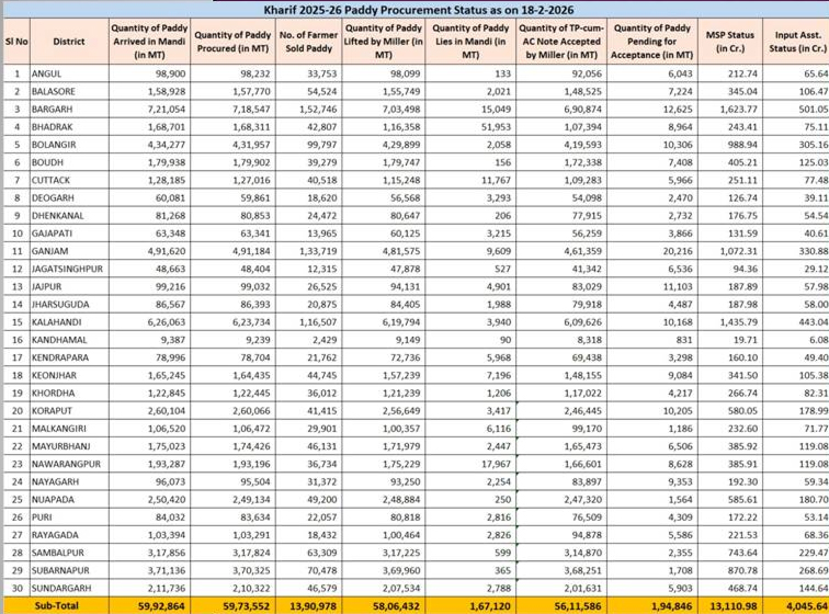 ଭୁବନେଶ୍ବର- ରାଜ୍ୟରେ ଆଜି ସୁଦ୍ଧା ଧାନ କିଣା ତଥ୍ୟ ଜାରି କରିଛନ୍ତି ରାଜ୍ୟ ସରକାର । ବର୍ତ୍ତମାନ ସୁଦ୍ଧା ମଣ୍ଡିକୁ ୫୯ଲକ୍ଷ ୯୨ହଜାର ୮୭୪ମେଟ୍ରିକ ଟନ୍ ଧାନ ଆସିଛି । ୫୯ଲକ୍ଷ ୭୩ହଜାର ୫୫୨ମେଟ୍ରିକ ଧାନ କିଣା ହୋଇଛି । ସେଥି ମଧ୍ୟରୁ ୫୮ଲକ୍ଷ ୬ହଜାର ୪୩୨ମେଟ୍ରିକ ଟନ ଧାନ ଉଠା ହୋଇଛି । ୧ଲକ୍ଷ ୯୪ହଜାର ୮୪୬ ମେଟ୍ରିକ ଟନ ଧାନ ମଣ୍ଡିରେ ପଡି ରହିଛି । ଏବେ ୧୩ଲକ୍ଷ ୯୦ହଜାର ୯୭୮ ଚାଷୀ ଧାନ ବିିକ୍ରି କରିସାରିଛନ୍ତି । ଚାଷୀଙ୍କ ଆକାଉଣ୍ଟକୁ ଯାଇଛି ୪ହଜାର ୪୫କୋଟି ଟଙ୍କାର ଇନପୁଟ ସବସିଡି । ଏମଏସପି ବାବଦକୁ ୧୩ହଜାର ୧୧୦କୋଟି ଟଙ୍କା ଯାଇଛି ।
