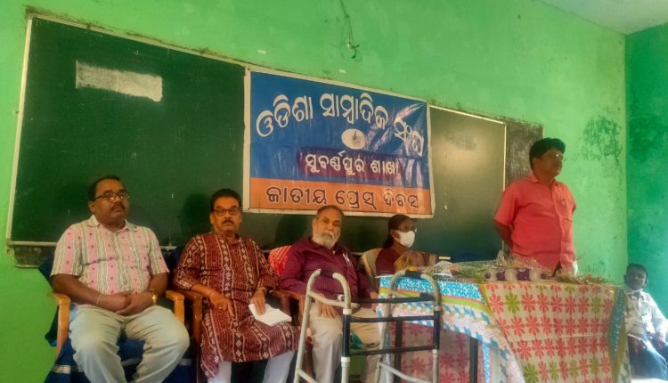 ସୁବର୍ଣ୍ଣପୁର: ଓଡିଶା ସାମ୍ବାଦିକ ସଂଘ (ଓଜେୟୁ) ସୁବର୍ଣ୍ଣପୁର ଜିଲ୍ଲା ଶାଖା ତରଫରୁ ୫୬ ତମ ଜାତୀୟ ପ୍ରେସ ଦିବସ ପାଳନ କରାଯାଇଛି । ଏହି ଅବସରରେ ମୁଖ୍ୟ ଅତିଥି ଭାବରେ ସୁବର୍ଣ୍ଣପୁର ଅତିରିକ୍ତ ଜିଲ୍ଲାପାଳ ଶ୍ରୀମତୀ ନିଶିପୁନମ ମିଞ୍ଜ, ଅନ୍ୟତମ ଅତିଥି ଭାବରେ ସୋନପୁର ମହାବିଦ୍ୟାଳୟର ଅଧ୍ୟକ୍ଷ ପ୍ରଫେସର ରାଜୀବ ଲୋଚନ ଆଚାର୍ଯ୍ୟ, ଜିଲ୍ଲା ସୂଚନା ଓ ଲୋକ ସମ୍ପର୍କ ଅଧିକାରୀ ଅଶ୍ୱିନୀ କୁମାର ଭୋଇ, ଅଧ୍ୟାପକ ଉମାକାନ୍ତ ନାଗ, ମୁଖ୍ୟ ବକ୍ତା ଭାବରେ ଡ଼. ଜ୍ୟୋତିରଞ୍ଜନ ବହିଦାର,ଏନସିସିର ଲେଫ୍ଟନାଣ୍ଟ କର୍ଣ୍ଣେଲ ତଥା ସୂଚନା ପ୍ରଯୁକ୍ତି ବିଦ୍ୟା ବିଭାଗର ମୁଖ୍ୟ ଆଶିଷ କୁମାର ଅଗ୍ରୱାଲ,ଓଡିଶା ସାମ୍ବାଦିକ ସଂଘ ସୁବର୍ଣ୍ଣପୁର ଜିଲ୍ଲା ଶାଖା ର ମନୋରଞ୍ଜନ ତ୍ରିପାଠୀ, ଦିଲୀପ ପାତ୍ର, ଜାତୀୟ କାର୍ଯ୍ୟକାରିଣୀ ସଦସ୍ୟ ନୀଳକମଳ ମିଶ୍ର, ଜିଲ୍ଲା ସମ୍ପାଦକ ମହାଦେବ ମଲ୍ଲିକଙ୍କ ସମେତ ସାମ୍ବାଦିକ ବିବେକା ନନ୍ଦ ମିଶ୍ର, ରାଜକିଶୋର ତ୍ରିପାଠୀ, ଆର୍ତ୍ତତ୍ରାଣ ପାଣିଗ୍ରାହୀ, ଉଗ୍ରସେନ କର୍ମୀ, ତରଣୀ କୁମାର ମେହେର, ମୁରଲୀ ଧର ସାହୁ, ଧ୍ରୁବ ମିଶ୍ର , ଶ୍ରୀନିବାସଚାନ୍ଦ, ସୁଶାନ୍ତ ପଣ୍ଡା ଯୋଗ ଦେଇଥିଲେ । ମହାବିଦ୍ୟାଳୟର ଏନସିସି ଛାତ୍ରଛାତ୍ରୀମାନେ ମଧ୍ୟ ଯୋଗ ଦେଇଥିଲେ ।