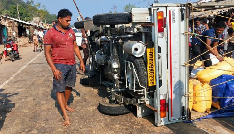 ବୌଦ୍ଧ,୧୨/୧- ଆଜି ସକାଳ ଘ. 9. 30 ମିନିଟ ସମୟରେ ଜାତୀୟ ରାଜପଥ ନମ୍ବର 57ର ଆଡେଣିଗଡ ନିକଟରେ ଏକ ଧାନ ବୋଝେଇ ମିନି ଟ୍ରକ ଭାରସାମ୍ୟ ହରାଇ ଓଲଟି ପଡିଥିବା ଜଣାପଡିଛି l ମିଳିଥିବା ସୂଚନା ଅନୁଯାୟୀ ମିନି ଟ୍ରକ ଓଡ଼ି 02 ବି.ଏନ. 0259 ବଡମ୍ବାରୁ ଧାନ ବୋଝେଇ କରି ପୁରୁଣାକଟକର ଏକ ଧାନ ମିଲକୁ ଯାଉଥିଲା l ଜାତୀୟ ରାଜପଥ ନମ୍ବର 57ର ପୁରୁଣା କଟକ ଥାନା ଆଡେଣିଗଡ ଗ୍ରାମର ଗଣେଶ ବଜ଼ାର ଛକଠାରେ ଜଣେ ବାଇକ ଆରୋହୀଙ୍କୁ ବଞ୍ଚେଇବାକୁ ଯାଇ ଭାରସାମ୍ୟ ହରାଇ ଓଲଟି ପଡିଥିଲା l ଗାଡ଼ିରେ ଥିବା ଡ୍ରାଇଭର ଦୁର୍ଘଟଣାରୁ ବର୍ତ୍ତି ଯାଇଥିବା ଜଣାପଡିଛି l ଆଡେଣିଗଡ ପୋଲିସ ଘଟଣା ସ୍ଥଳରେ ପହଂଚି ତଦନ୍ତ ଚଳାଇଥିବା ଜଣାପଡିଛି ।