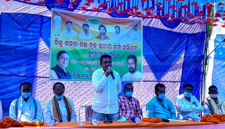 କଣ୍ଟାବାଞ୍ଜି,୨୮/୩- ବଲାଙ୍ଗୀର ଜିଲ୍ଲା କଣ୍ଟାବାଞ୍ଜି ନିର୍ବାଚନ କ୍ଷେତ୍ର ତୁରିକେଲା ବ୍ଲକ ବିଜୁ ଜନତା ଦଳର ବ୍ଲକସ୍ତରୀୟ କର୍ମୀ ସମ୍ମିଳନୀ ମହୁଲବାହାଳୀ ଆମ୍ବ ବଗିଚା ପଡିଆରେ ଅନୁଷ୍ଠିତ ହୋଇଯାଇଛି । ବ୍ଲକ ସଭାପତି ଆଶାଦୁଲ୍ଲା ଖାଁଙ୍କ ଅଧ୍ୟକ୍ଷତାରେ ଜିଲ୍ଲା ସାଧାରଣ ସଂପାଦକ ଫିରୋଜ ଖାଁ ମୁଖ୍ୟ ଅତିଥି ଭାବେ ଯୋଗ ଦେଇଥିଲେ । ଓଡିଶାର ଜନନାୟକ ସ୍ବର୍ଗୀୟ ବିଜୁ ବାବୁଙ୍କ ଫଟୋରେ ପୁଷ୍ପ ଧୂପ ଅର୍ପଣ କରି କାର୍ଯ୍ୟକ୍ରମ ଆରମ୍ଭ କରାଗଲା l କ୍ଷେତ୍ରର ଉନ୍ନତି, ଜନ ସାଧାରଣଙ୍କ ସମସ୍ୟା ଓ ରାଜ୍ୟ ସରକାରଙ୍କ ବିଭିନ୍ନ ପ୍ରକାରର ଯୋଜନା କାର୍ଯ୍ୟକାରୀ ନିମନ୍ତେ ଦଳର କର୍ମୀଙ୍କ ସହ ଆଲୋଚନା କରିବା ସହିତ ନିଜ ଏକତା, ପରସ୍ପର ସାହାଯ୍ୟ ଓ ପରିଶ୍ରମ ଉପରେ ମୁଖ୍ୟ ଗୁରୁତ୍ୱ ଦେଇ ଦଳ ର ସଂଗଠନ ନିମନ୍ତେ କର୍ମୀଙ୍କୁ ଆହ୍ବାନ ଦେଇଥିଲେ । ଅନ୍ୟତମ ଅତିଥି ଭାବେ ପୂର୍ବତନ ଜିଲ୍ଲା ପରିଷଦ ପୁସ୍ତମ ସାହୁ, ପୂର୍ବତନ ଜିଲ୍ଲା ପରିଷଦ ଶଶୀଧର ମାଂଝି, ବଡ଼ବାକି ବିଜେଡି ବରିଷ୍ଠ ନେତା ଭୂପତି କ୍ଷତ୍ରୀୟା, ରଂଜିତ ମାଂଝି, ଚମ୍ପକେଶ୍ୱର ଭୋଇ, ମୁରଲୀ ଦାଦା, ତୁରିକେଲା ବ୍ଲକ ଜିଲ୍ଲା କାର୍ଯ୍ୟକାରିଣୀ ସଦସ୍ୟ ବିଶ୍ୱନାଥ ସାହୁ, ବିଜୁ ଜନତା ଦଳ ଯୁବ ମୋର୍ଚା କାର୍ଯ୍ୟକାରିଣୀ ସଭାପତି ଉତ୍ତମ ପନିକା ପ୍ରମୁଖ ମଂଚାସୀନ ରହି ସଂଗଠନ ପ୍ରତି ନିଜ ମତ ରଖିଥିଲେ । ଦଳର କର୍ମୀମାନଙ୍କ ମଧ୍ୟରେ ବେଶ ଉତ୍ସାହ ଦେଖିବାକୁ ମିଳିଥିଲା । କାର୍ଯ୍ୟକ୍ରମର ଶେଷରେ ବିଜେଡି ଜିନ୍ଦାବାଦ ବିଜୁ ବାବୁ ଜିନ୍ଦାବାଦ ଭଳି ନାରା ଦ୍ୱାରା କର୍ମୀମାନଙ୍କୁ ଉତ୍ସାହିତ କରାଯାଇଥିଲା । କରୋନାର ଦ୍ଵିତୀୟ ଲହରରୁ ନିଜ ସହ ପରିବାର ଓ ସମାଜର ସୁରକ୍ଷା ନିମନ୍ତେ ସ୍ଥିରିକୃତ ହୋଇଥିବା ମାର୍ଗଦର୍ଶିକାକୁ ପାଳନ କରିବାକୁ ସାଧାରଣ ସମ୍ପାଦକ ଫିରୋଜ ଖାଁ ଅନୁରୋଧ କରିଥିଲେ ।