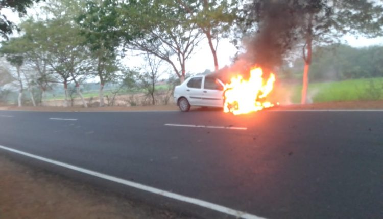 ନିଆଁ ଲାଗି ରାସ୍ତା କଡରେ ଜଳିଗଲା କାର