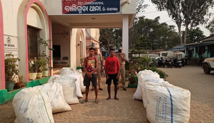 ବାଲିଗୁଡ଼ା,୨୭/୩: ବାଲିଗୁଡ଼ା ପୋଲିସକୁ ବଡ଼ ସଫଳତା । ଗଞ୍ଜେଇ ଚୋରାଚାଲାଣ ପାଇଁ ବିପୁଳ ପରିମାଣର ଗଞ୍ଜେଇ ଗଛିତ ଥିବା ସ୍ଥାନରେ ବାଲିଗୁଡ଼ା ପୋଲିସ୍ ପକ୍ଷରୁ ଚଢ଼ାଉ । ଘଟଣାରେ ସମ୍ପୃକ୍ତ ଦୁଇଜଣ ଗଞ୍ଜେଇ ମାଫିଆଙ୍କୁ ପୋଲିସ୍ ଗିରଫ କରିଥିବା ବେଳେ ଅନ୍ୟ ତିନିଜଣ ଘଟଣାସ୍ଥଳରୁ ଫେରାର୍ ହୋଇଯାଇଥିବା ଜଣାପଡ଼ିଛି । ସୂଚନା ପ୍ରକାରେ ବାଲିଗୁଡ଼ା ପୋଲିସ୍ ପକ୍ଷରୁ ସବ୍ ଇନ୍ସପେକ୍ଟର ରବିନ୍ଦ୍ର ମୁଣ୍ଡାରୀ ନିଜ ଟିମ୍ ସହ ପେଟ୍ରୋଲିଂ କରୁଥିବା ବେଳେ ପଦ୍ମାପଦର ଝୁଲା ପୋଲ ନିକଟରେ ଏକ କୁଡ଼ିଆ ଘରେ ବିପୁଳ ପରିମାଣର ଗଞ୍ଜେଇ ଗଛିତ ଥିବା ବିଶେଷ ସୂତ୍ରରୁ ଖବର ପାଇଥିଲେ । ଖବର ମୁତାବକ ଅଚାନକ ଗଞ୍ଜେଇ ଗଛିତ ଥିବା କୁଡ଼ିଆ ଘରେ ଚଢ଼ାଉ କରିଥିଲା ପୋଲିସ୍ । ଘଟଣାସ୍ଥଳରୁ ୪୫୦କେଜି ୮୦୦ଗ୍ରାମ୍ ଗଞ୍ଜେଇ ଜବତ କରିବାସହ ଦୁଇଜଣ ଗଞ୍ଜେଇ ମାଫିଆଙ୍କୁ ଗିରଫ କରି କୋର୍ଟ ଚାଲାଣ କରିଛି ପୋଲିସ୍ । ଏଥିସହିତ ଫେରାର ଥିବା ଅନ୍ୟ ଗଞ୍ଜେଇ ମାଫିଆକୁ ଧରିବା ପାଇଁ ପ୍ରୟାସ ଜାରି ରହିଥିବା ସହ ଘଟଣାର ଅଧିକ ତଦନ୍ତ ଜାରି ରଖିଛି ପୋଲିସ୍ । ଜବତ ଗଞ୍ଜେଇର ଆନୁମାନିକ ମୂଲ୍ୟ ୨୨ଲକ୍ଷ ଟଙ୍କା ହେବ ବୋଲି ପୋଲିସ ପକ୍ଷରୁ ସୂଚନା ମିଳିଛି । ଗିରଫ ଦୁଇଜଣ ବାଲିଗୁଡ଼ା ଥାନା ବକାରିମୁଣ୍ଡା ଗ୍ରାମର ପରାସ ମଲ୍ଲିକ ଓ ପଦ୍ମଚରଣ ମଲ୍ଲିକ ହୋଇଥିବା ଜଣାପଡ଼ିଛି ।
