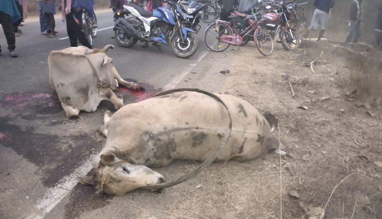 ଡ଼ମ୍ଫର୍ ଧକ୍କାରେ ୪ ଗୋରୁ ମୃତ, ୨ ଗୋରୁ ସମେତ ୩ ଶଗଡିଆ ଆହତ