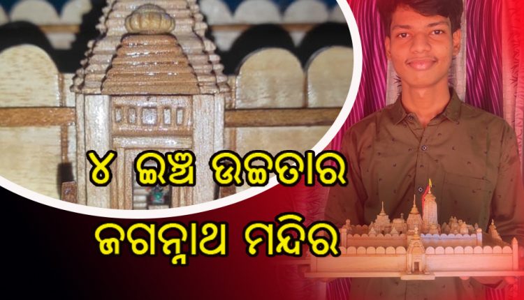 ବ୍ରହ୍ମପୁର : ବ୍ରହ୍ମପୁର ସହରର ସାନ ରେଡ୍ଡିକା ସାହିର ଦିଲୀପ ମହାରଣା ବୟସ ୧୮ ବର୍ଷ । ପିତା ଭଗବାନ ମହାରଣା ଏବଂ ମାତା ଝୁନୁ ମହାରଣା ସେ ବର୍ତ୍ତମାନ ଖଲ୍ଲିକୋଟ କଲେଜରେ ଯୁକ୍ତତିନି ବାଣିଜ୍ୟର ପ୍ରଥମ ବର୍ଷର ଛାତ୍ର । ଦିଲୀପ ଚଳିତ ରଥଯାତ୍ରା ଅବସରରେ ପୁରୀ ଶ୍ରୀ ଜଗନ୍ନାଥଙ୍କ ଏକ କାଠରେ ତିଆରି ୪ ଇଞ୍ଚ ମୂଳ ପୀଠ ସହ ୫.୬ ଇଞ୍ଚର, ଏକ ଜଗନ୍ନାଥଙ୍କର ଶ୍ରୀମନ୍ଦିର ନିର୍ମାଣ କରିଛନ୍ତି । ଏହି ମନ୍ଦିର ତିଆରି କରିବା ପାଇଁ ଦିଲୀପକୁ ପ୍ରାୟ ଏକ ମାସର ସମୟରୁ ଉଦ୍ଧ୍ୱର୍ ସମୟ ଲାଗିଥିଲା ।