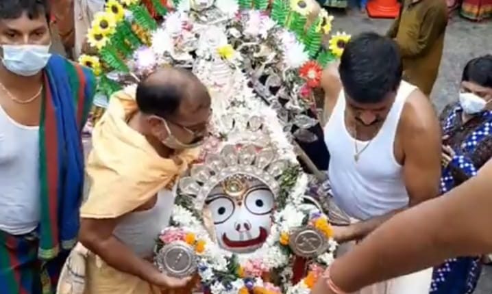 ସମ୍ବଲପୁର :ତୃତୀୟ ଲହରୀର ଆଶଙ୍କା ଓ କରୋନା ସଂକ୍ରମଣକୁ ନିୟନ୍ତ୍ରଣରେ ରଖିବା ପାଇଁ ଘୋଷିତ କଟକଣା ଯୋଗୁଁ ଆଜି ପୂର୍ବାହ୍ନ ବାହୁଡ଼ା ଯାତ୍ରା ପାଇଁ ପହଣ୍ଡି ବିଜେ ହୋଇଯାଇଛି । ସୀମିତ ଭକ୍ତଙ୍କ ଗହଣରେ ରଥଯାତ୍ରା ପରି ବାହୁଡ଼ା ଯାତ୍ରାରେ ରଥ ଗଡିବା ସ୍ଥଗିତ ରଖାଯାଇଛି । ସମ୍ବଲପୁରର ପ୍ରତିଷ୍ଠିତ ରଥଯାତ୍ରା ପରମ୍ପରା ପାଳନ ଅନୁଯାୟୀ ସର୍ବପ୍ରଥମେ ସ୍ଥାନୀୟ ଝାଡୁଆପଡା ସ୍ଥିତ ବରମପୁରା ଜଗନ୍ନାଥ ମନ୍ଦିରରେ ଆଜିକାର ବାହୁଡ଼ା ଯାତ୍ରା ପାଇଁ ପହଣ୍ଡି ବିଜେ ଆରମ୍ଭ କରାଯାଇଛି । ଏହା ପରେ ଗୋଟି ଗୋଟି କରି ଅନ୍ୟ ସବୁ ଜଗନ୍ନାଥ ମନ୍ଦିର ମାନଙ୍କରେ ପହଣ୍ଡି ବିଜେ ବିଧି ଅନୁଷ୍ଠିତ ହୋଇଛି । ଚତୁର୍ଦ୍ଧାମୂର୍ତ୍ତିଙ୍କ ରଥାରୂଢ଼ ହୋଇ କିଛି ସମୟ ରଖାଯିବ ଓ ସେଠାରେ ପୂଜା ଅର୍ଚ୍ଚନା ପରେ ପ୍ରଭୁ ଜଗନ୍ନାଥ ନିଜ ଜ୍ୟୋଷ୍ଠ ଭ୍ରାତା ବଳଭଦ୍ର ଓ ଭଗିନୀ ସୁଭଦ୍ରାଙ୍କ ସହିତ ସ୍ୱମନ୍ଦିର କୁ ପ୍ରତ୍ୟାବର୍ତ୍ତନ କରିବେ । ସେତିକି ସ୍ୱଳ୍ପ ସମୟ ମଧ୍ୟରେ ଯେତିକି ସମ୍ଭବ ଭକ୍ତ ସେଠାରେ ପହଞ୍ଚି ଦର୍ଶନ ଲାଭ କରିବେ । ସମଗ୍ର ଓଡ଼ିଶା ସହିତ ଏଠାରେ ମଧ୍ୟ ରଥଯାତ୍ରା ଓ ବାହୁଡା଼ ଯାତ୍ରା ବହୁତ ଜାଗଜମକ ସହିତ ପାଳନ ହୋଇଥାଏ, କିନ୍ତୁ ଏଥର କୋଭିଡ କଟକଣା ଭକ୍ତମାନଙ୍କୁ ନିରାଶ କରିଛି ।