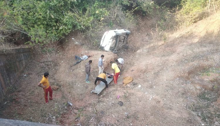 ଭାରସାମ୍ୟ ହରାଇ ୧୫ଫୁଟ ଖାଲକୁ ଖସିଲା କାର୍‌; ଜଣେ ମୃତ, ଡ୍ରାଇଭର ସମେତ ୪ ଜଣ ଗୁରୁତର