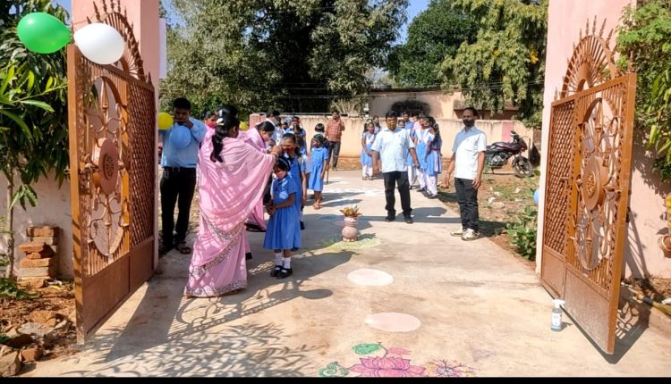 ବିଦ୍ୟାଳୟର ମୁଖ୍ୟ ଫାଟକରେ କୋଭିଡ୍ ନିୟମ ପାଳନକରି ଛାତ୍ରଛାତ୍ରୀଙ୍କ ହାତ ସାନିଟାଇଜ୍, ମାସ୍କ ପରିଧାନ କରାଇବା ସହ ମୁଣ୍ଡରେ ଫୁଲ ଓ ଛାତ୍ରଛାତ୍ରୀମାନଙ୍କୁ ମିଠା ଖୁଆଇ ବିଦ୍ୟାଳୟ ମଧ୍ୟକୁ ପ୍ରବେଶ କରାଇଥିଲେ ବିଦ୍ୟାଳୟ କର୍ତ୍ତୃପକ୍ଷ । ଦୀର୍ଘ ଦୁଇବର୍ଷ ପରେ ଛାତ୍ରଛାତ୍ରୀ ବିଦ୍ୟାଳୟକୁ ଆସିବାର ସୁଯୋଗ ପାଇଥିବାରୁ ଛାତ୍ରଛାତ୍ରୀ ବେଶ୍ ଉତ୍ସାହିତ ଥିବା ଦେଖିବାକୁ ମିଳିଛି । ଏଥିସହିତ ବିଦ୍ୟାଳୟର ସମସ୍ତ ଶିକ୍ଷକ ଶିକ୍ଷୟିତ୍ରୀ ଛାତ୍ରଛାତ୍ରୀମାନଙ୍କୁ ପାଖରେ ପାଇ ବେଶ୍ ଖୁସି ଥିବାବେଳେ ଅଭିଭାବକମାନେ ମଧ୍ୟ ଆନନ୍ଦିତ ଥିବା ଜଣାପଡ଼ିଛି ।