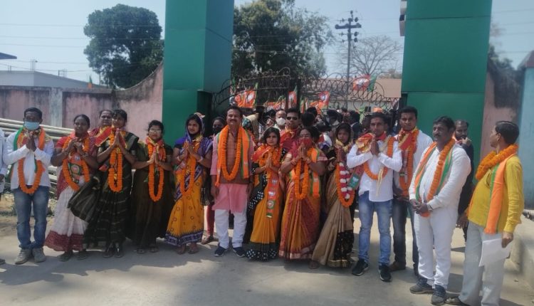 ଆଜି କଂଗ୍ରେସର ଅଧ୍ୟକ୍ଷ ପ୍ରାର୍ଥୀ ଅନନ୍ତ ମାଝୀ ଓ ବିଜେପିର ଅଧ୍ୟକ୍ଷ ପ୍ରାର୍ଥୀ କୁସୁମି ପ୍ରଧାନଙ୍କ ସମେତ ୧ ନଂ ୱାର୍ଡ ପାଇଁ କଂଗ୍ରେସରୁ ଅଜୟ କୁମାର ଦିଗାଲ,ବିଜେପିରୁ ଅମିୟ କୁମାର ବେହେରା ଓ ସ୍ୱାଧିନ ପ୍ରାର୍ଥୀ ଦିଲ୍ଲିପ କୁମାର ମଲ୍ଲିକ,୨ ନଂ ୱାର୍ଡ ପାଇଁ କଂଗ୍ରେସରୁ ମନ୍ଦୋଦରୀ ଦିଗାଲ, ବିଜେପିରୁ ରୁବୀ ନାୟକ ଓ ସ୍ୱାଧିନ ପ୍ରାର୍ଥୀ ବନିତା ଦିଗାଲ,୩ ନଂ ୱାର୍ଡ ପାଇଁ କଂଗ୍ରେସରୁ ଲଳିତା ପ୍ରଧାନ, ବିଜେପିରୁ ଝିଲି ନାୟକ ଓ ସ୍ୱାଧିନ ପ୍ରାର୍ଥୀ କପିଳାସ ନାୟକ,୪ ନଂ ୱାର୍ଡ ପାଇଁ କଂଗ୍ରେସରୁ ଗଣେଶ ପ୍ରଧାନ, ବିଜେପିରୁ ରିଙ୍କି ପ୍ରଧାନ,୫ ନଂ ୱାର୍ଡ ପାଇଁ କଂଗ୍ରେସରୁ ଭବାନୀ ନାୟକ, ବିଜେପିରୁ ସ୍ନେହଲତା ବେହେରା,୬ ନଂ ୱାର୍ଡ ପାଇଁ କଂଗ୍ରେସରୁ ଅଭିମନ୍ୟୁ ମଲ୍ଲିକ,ବିଜେପିରୁ ନୀଳମାଧବ ବେହେରା,୭ ନଂ ୱାର୍ଡ ପାଇଁ କଂଗ୍ରେସରୁ ସ୍ମିତାରାଣୀ ନାୟକ,ବିଜେପିରୁ ସିଲି ନାୟକ,୮ ନଂ ୱାର୍ଡ ପାଇଁ କଂଗ୍ରେସରୁ ସୁନିତା ମଲ୍ଲିକ, ବିଜେପିରୁ ରାଜକୁମାରୀ ଦୋରା,୯ ନଂ ୱାର୍ଡ ପାଇଁ କଂଗ୍ରେସରୁ ସଞ୍ଜୁକ୍ତା ଦାସ,ବିଜେପିରୁ ଅହଲ୍ୟା ବେହେରା,୧୦ ନଂ ୱାର୍ଡ ପାଇଁ କଂଗ୍ରେସରୁ ଗୁରୁବାରି ବେହେରା, ବିଜେପିରୁ ବାସନ୍ତୀ ଦଣ୍ଡସେନା,୧୧ ନଂ ୱାର୍ଡ ପାଇଁ କଂଗ୍ରେସରୁ ବ୍ରହ୍ମାନନ୍ଦ ମଲ୍ଲିକ, ବିଜେପିରୁ ମାଧବ ପୂଜାରୀ,୧୨ ନଂ ୱାର୍ଡ ପାଇଁ କଂଗ୍ରେସରୁ ରୀନା ପାତ୍ର, ବିଜେପିରୁ ରେଖା ମଲ୍ଲିକ,୧୩ ନଂ ୱାର୍ଡ ପାଇଁ କଂଗ୍ରେସରୁ ଆଲୋକ ନାୟକ, ବିଜେପିରୁ ଷ୍ଟିଫେନ୍ ଦିଗାଲ ଓ ସ୍ୱାଧିନ ପ୍ରାର୍ଥୀ ମକରଧ୍ୱଜ ନାୟକ ନାମାଙ୍କନ ପତ୍ର ଦାଖଲ କରିଛନ୍ତି । ନାମାଙ୍କନ ପତ୍ର ଦାଖଲ ପ୍ରକ୍ରିୟା ଶେଷ ସୁଦ୍ଧା ତିନି ପ୍ରମୁଖ ରାଜନୈତିକ ଦଳ ବିଜେଡ଼ି, ବିଜେପି ଓ କଂଗ୍ରେସ ଦଳରୁ ତିନିଜଣ ଅଧ୍ୟକ୍ଷ ପ୍ରାର୍ଥୀଙ୍କ ସମେତ ୪୩ ଜଣ କାଉଁସିଲର ପ୍ରାର୍ଥୀ ନାମାଙ୍କନ ପତ୍ର ଦାଖଲ କରିଛନ୍ତି । ସେଥିମଧ୍ୟରୁ ଚାରିଜଣ ସ୍ୱାଧିନ କାଉଁସିଲର ପ୍ରାର୍ଥୀ ଥିବା ଜଣାପଡ଼ିଛି । ଆସନ୍ତା ୯ ତାରିଖରେ ପ୍ରାର୍ଥୀପତ୍ର ଯାଞ୍ଚ୍ କାର୍ଯ୍ୟ ହେବାକୁ ଥିବାବେଳେ ଆସନ୍ତା ୧୪ ତାରିଖ ଯାଏଁ ପ୍ରତ୍ୟାହାର ସମୟ ରହିଥିବା ନିର୍ବାଚନ ଅଧିକାରୀ ତଥା ବାଲିଗୁଡ଼ା ତହସିଲଦାର ଶଶାଙ୍କ ପାତ୍ର ସୂଚନା ଦେଇଛନ୍ତି ।
