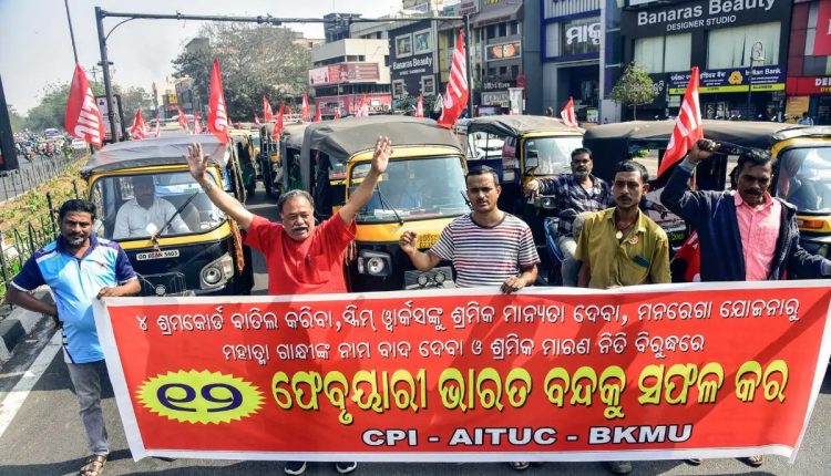 ଭୁବନେଶ୍ୱର: କେନ୍ଦ୍ରୀୟ ଶ୍ରମ ଆଇନକୁ ବିରୋଧ କରି ଆଜି ୧୨ଘଣ୍ଟିଆ ଭାରତ ବନ୍ଦ ପାଳନ କରାଯାଉଛି । ଏହି ବନ୍ଦର ପ୍ରଭାବ ଓଡ଼ିଶାର ବିଭିନ୍ନ ସ୍ଥାନରେ ପଡଛି । ରାଜଧାନୀ ଭୁବନେଶ୍ୱରରେ ବିଭିନ୍ନ ଛକରେ ଆନ୍ଦୋଳନକାରୀମାନେ ପିକେଟିଂ କରିବା ସହ ଗାଡିକୁ ଅଟକାଇଛନ୍ତି । ଆଇଗିଣୀଆ ଛକ, ମାଷ୍ଟରକ୍ୟାଣ୍ଟିନ, ଜୟଦେବ ବିହାର ଛକ, ବାଣୀବିହାର, ରାଜମହଲ ଛକରେ ଶ୍ରମିକ ସଂଗଠନ ପକ୍ଷରୁ ବିକ୍ଷୋଭ କରାଯାଇଛି । ଏହାସହିତ ବରମୁଣ୍ଡା ବସ ଷ୍ଟାଣ୍ଡରେ ଗାଡି ଚଳାଚଳ ବନ୍ଦ ରହିଛି ।