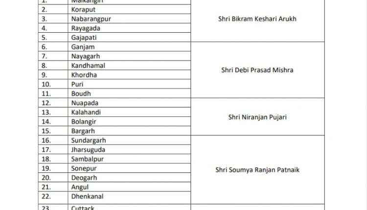 ପର୍ଯ୍ୟବେକ୍ଷକଙ୍କ ନିଯୁକ୍ତି ପରେ ଜିଲ୍ଲାୱାରୀ ୬ଜଣ ନେତାଙ୍କୁ ବରିଷ୍ଠ ପର୍ଯ୍ୟବେକ୍ଷକ ଦାୟିତ୍ୱ ଦେଲା ବିଜେଡି ରାଜ୍ୟ By Hiranchal Live Last updated Jun 26, 2021 0 654 Share