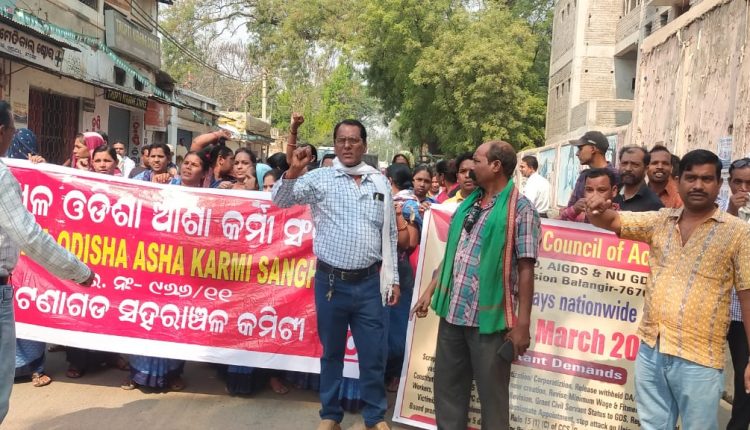 ପାଟଣାଗଡ଼: କେନ୍ଦ୍ରୀୟ ଟ୍ରେଡ଼ ୟୁନିଅନ ଦ୍ୱାରା ଆହୂତ ଦୁଇଦିନିଆ ଭାରତ ବନ୍ଦକୁ ମଙ୍ଗଳବାର ପାଟଣାଗଡରେ ବିପୁଳ ଜନସମର୍ଥନ ମିଳିଛି । ବନ୍ଦ ପ୍ରଭାବରେ ପାଟଣାଗଡର ସମସ୍ତ ଦୋକାନ ବଜାର, ସରକାରୀ କାର୍ଯ୍ୟାଳୟ, ବ୍ୟାଙ୍କ, ବୀମା, ପୋଷ୍ଟ ଅଫିସ, କୋର୍ଟ କଚେରୀ, ଶିକ୍ଷାନୁଷ୍ଠାନ ବନ୍ଦ ରହିଥିଲା । ଗାଡି ଚଳାଚଳ ବାଧାପ୍ରାପ୍ତ ହୋଇଥିଲା । ଧୂମାଭଟା ଛକ ଠାରେ ପାଟଣାଗଡ କୋର୍ଡିନେସନ କମିଟି ଅଫ ଟ୍ରେଡ଼ ୟୁନିଅନ ଏଣ୍ଡ ଆସୋସିଏସନ ପକ୍ଷରୁ ବିକ୍ଷୋଭ ପ୍ରଦର୍ଶନ କରାଯାଇଥିଲା । କେନ୍ଦ୍ର ସରକାରଙ୍କ ଶ୍ରମିକ ବିରୋଧୀ ଶ୍ରମିକ ଆଇନ ଶ୍ରମ କୋଡ଼କୁ ପ୍ରତ୍ୟାହାର, ବ୍ୟାଙ୍କ ବୀମା ପୋଷ୍ଟ, ରେଲୱେ ପ୍ରଭୃତି ରାଷ୍ଟ୍ରାୟତ୍ତ ଉଦ୍ୟୋଗ ଗୁଡିକର ଘରୋଇକରଣ ବନ୍ଦ କରିବା, ସରକାରୀ ସଂସ୍ଥା ଗୁଡିକର ଠିକାକରଣ ବନ୍ଦ,ପେଟ୍ରୋଲ, ଡିଜେଲ, ରୋଷେଇ ଗ୍ୟା ,ଦର ହ୍ରାସ କରିବା,ଅତ୍ୟାବଶ୍ୟକ ସାମଗ୍ରୀ ର ଦରଦାମ ନିୟନ୍ତ୍ରଣ କରିବା ଆଶା, ଅଙ୍ଗନୱାଡି,ପାଚିକାଶ୍ରମିକମାନଙ୍କୁ ସ୍ଥାୟୀ ନିଯୁକ୍ତି,ସର୍ବନିମ୍ନ ଛବିଶ ହଜାର ଦରମା, ସମାନ କାମକୁ ସମାନ ଦରମା, ଜାତୀୟ ପେନସନ ନିୟମ ବାତିଲ କରି ପୁରୁଣା ପେନସନ ନୀତି ଲାଗୁ କରିବା, ଠିକା କର୍ମଚାରୀ ମାନଙ୍କୁ ସ୍ଥାୟୀ କରିବା, ଜୀବନ ରକ୍ଷାକାରି ଔଷଧର ଦର କମାଇବା, ଅଣସଂଗଠିତ ଶ୍ରମିକମାନଙ୍କୁ ସାମାଜିକ ସୁରକ୍ଷା ବୀମା ଭୁକ୍ତ କରିବା, ଶିକ୍ଷିତ ବେକାର ଯୁବକ ଯୁବତୀଙ୍କୁ ନିଯୁକ୍ତି ସୁଯୋଗ, ଦେଶ ବଞ୍ଚାଅ ଜନତା ବଞ୍ଚାଅ ପ୍ରଭୃତି ଦାବି ଉପରେ ବିକ୍ଷୋଭକାରି ମାନେ ଆଲୋକପାତ କରିଥିଲେ । ବିଜେପି ନେତୃତ୍ୱାଧୀନ କେନ୍ଦ୍ର ସରକାରଙ୍କ ଜନ ବିରୋଧୀ ନୀତିକୁ ବିଭିନ୍ନ ସଂଗଠନ ର ନେତାମାନେ କଟୁ ସମାଲୋଚନା କରିଥିଲେ । କେନ୍ଦ୍ରୀୟ ଟ୍ରେଡ଼ ୟୁନିଅନ ଗୁଡିକ ଦ୍ୱାରା ଦେଶବ୍ୟାପି ସାଧାରଣ ଧର୍ମଘଟକୁ ଜନସାଧାରଣ ଅଦ୍ଭୁତପୂର୍ବ ସମର୍ଥନ କରିଥିଲେ । ପାଟଣାଗଡ ମିଳିତ ମଞ୍ଚର ନିରଞ୍ଜନ ବିଶି, ରାଜେଶ ମେହେର,ଦଶରଥ ଦାଶ,ସୁନୀଲ ଗୋୟଲ, ଘନଶ୍ୟାମ ମେହେର, ଦିଲୀପ ଭୋଇ, ଲଳିତ ମଳିକ, ଡିଙ୍ଗର କୁମ୍ଭାର, ଶଙ୍ଖା ଚନ୍ଦନ, ସୌଦାମିନୀ ବଗର୍ତ୍ତୀ, ଲଳିତା ବାଗ, ଉର୍ବଶୀ ସାହୁ, ସଂଗୀତା ହରପାଳ, ମଥୁରା କାଳସାଏ, ଆନନ୍ଦିନୀ ବିଶ୍ୱାଳ ପ୍ରମୁଖ ସହଯୋଗ କରିଥିଲେ । ପଶ୍ଚିମାଞ୍ଚଳ ବିଜୁଳି ଶ୍ରମିକ ସଂଘ,ବଢେଇ ମିସ୍ତ୍ରୀ ସଂଘ, ହୀରା ଜିଟିଡ଼ି ୱାର୍କର୍ସ ୟୁନିଅନ, ପୋଷ୍ଟାଲ ଏମ୍ପ୍ଲୟୀ ୟୁନିଅନ,ଆଶା କର୍ମୀ ସଂଘ,ସିଟି ଜେନ କମିଟି, ଅଙ୍ଗନୱାଡି କର୍ମଚାରୀ ସଂଘ, ପଶ୍ଚିମ ଓଡିଶା କେନ୍ଦୁପତ୍ର କର୍ମଚାରୀ ସଂଘ, ଉଠା ଦୋକାନୀ ସଂଘ, ଏନ.ଏ.ସି ସଫେଇ କର୍ମଚାରୀ ସଂଘ,ଏବଂ ଅନ୍ୟାନ୍ୟ ସଂଗଠନର କର୍ମକର୍ତ୍ତା ସାମିଲ ଥିଲେ ।