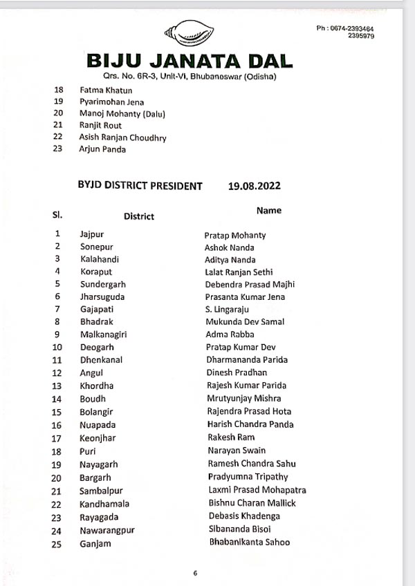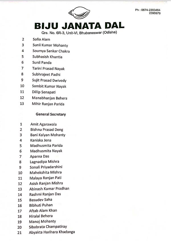 ବିଜେଡିର ରାଜ୍ୟ ଓ ଜିଲ୍ଲାସ୍ତରୀୟ କର୍ମକର୍ତ୍ତା ନିଯୁକ୍ତି, ଜାଣନ୍ତୁ କାହାକୁ ମିଳିଲା କେଉଁ ଦାୟିତ୍ୱ