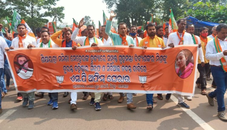 ଫୁଲବାଣୀ:ମମିତା ମେହେର ହତ୍ୟାକାଣ୍ଡର ଦୂରାଚାରୀଙ୍କ ବିରୁଦ୍ଧରେ ସ୍ୱର ଉତ୍ତୋଳନ ସହ ମନ୍ତ୍ରୀ ଦିବ୍ୟଶଙ୍କର ମିଶ୍ରଙ୍କ ଗିରଫ ଦାବିରେ ମାଦିକୁନ୍ଦା ଛକଠାରୁ ଏକ ରାଲି ବାହାରି ଭାରତୀୟ ଜନତା ପାର୍ଟି ଯୁବମୋର୍ଚ୍ଚା ପକ୍ଷରୁ ଏସପି ଅଫିସ ଘେରାଉ କରାଯାଇଥିଲା । ପୋଲିସ ବିଜୁଜନତା ଦଳର ଗୁଣ୍ଡା ମାନଙ୍କୁ ସୁରକ୍ଷା ଦେଉଥିବା ମଧ୍ୟ ଅଭିଯୋଗ କରିଥିଲେ । ବିକ୍ଷୋଭ କାର୍ଯ୍ୟକ୍ରମରେ ବିଜେପିର ପୂର୍ବତନ ସାଂସଦ ଖାରବେଳ ସ୍ୱାଇଁ, ଜିଲ୍ଲା ସଭାପତି ଜଗନ୍ନାଥ ସାହୁ,ରାଜ୍ୟ କାର୍ଯ୍ୟକାରିଣୀ ସଦସ୍ୟ କମଳା କାନ୍ତ ପାଣ୍ଡେ, ଭଗବାନ ମହାନ୍ତି, ଲିଙ୍ଗରାଜ ଦଳବେହେରା, ଦେବ ନାରାୟଣ ପ୍ରଧାନ, ଜିଲ୍ଲା ଉପସଭାପତି ରମେଶଚନ୍ଦ୍ର ମହାନ୍ତି, ଅନୁସୂଚିତ ଜାତିମୋର୍ଚ୍ଚା ସାଧାରଣ ସମ୍ପାଦକ ଲୁଲୁ ବେହେରା, ଜିଲ୍ଲା ସଂପାଦକ ଦେବରାଜମୁଖି, ଯୁବମୋର୍ଚ୍ଚା ସଭାପତି ଗୋଲକବିହାରୀ କହଁର, ସଂଯୋଜକ ଜଗନ୍ନାଥ ସାହୁ, ଗ୍ରାମୀଣ ମଣ୍ଡଳ ସଭାପତି ଆଦିତ୍ୟ କହଁର, ଖଜୁରୀପଡା ମଣ୍ଡଳ ସଭାପତି ଦଶରଥ ସାହୁ, ଫୁଲବାଣୀ ନଗର ସଭାପତି ସୁଶାନ୍ତ ମହାନ୍ତି, ମାମି ବେହେରାଙ୍କ ସହ ବିଜେପିର ବହୁ ପଦାଧିକାରୀ ଏବଂ କାର୍ଯ୍ୟକର୍ତ୍ତା ଯୋଗଦାନ କରିଥିଲେ । ଜିଲ୍ଲା ସମ୍ପାଦକ ପରେଶ ମହାପାତ୍ର, ଟିକାବାଲି ମଣ୍ଡଳ ସଭାପତି ଜିତେନ୍ଦ୍ର ଡାକୁଆ, ଯୁବ ମୋର୍ଚ୍ଚାର ସୁଧାଂଶୁ ଗୁରୁ ପ୍ରମୁଖ ଯୋଗ ଦେଇଥିଲେ ।