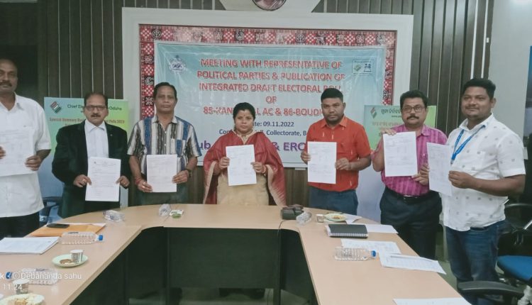 ବୌଦ୍ଧ,୯/୧୧- ବୌଦ୍ଧ ଜିଲ୍ଲାରେ ଚଳିତ ବର୍ଷର ଚିଠା ଭୋଟର ତାଲିକା ପ୍ରକାଶିତ ହୋଇଯାଇଛି । ଅତିରିକ୍ତ ଜିଲ୍ଲା ନିର୍ବାଚନ ଅଧିକାରୀ ଶ୍ରୀମତୀ ବବିତାରାଣୀ ଦଳବେହେରାଙ୍କ ଅଧ୍ୟକ୍ଷତାରେ ଅନୁଷ୍ଠିତ ଏକ ସଭାରେ ଜିଲ୍ଲାର ସମସ୍ତ ରାଜନୈତିକ ଦଳର କର୍ମକର୍ତ୍ତା ଉପସ୍ଥିତ ଥିଲେ । ଚଳିତବର୍ଷ ଭୋଟର ମାନଙ୍କ ସୁବିଧା ନିମନ୍ତେ ଭୋଟର ହେଲ୍ପଲାଇନ ଆପ ପ୍ରଚଳିତ କରାଯାଇଥିଲା । ଏହି ଆପ ଦ୍ୱାରା ସାଧାରଣ ଜନତା ଭୋଟର ତାଲିକାରେ ନିଜ ନାମ ଯାଞ୍ଚ, ସଂଶୋଧନ, ସ୍ଥାନାନ୍ତର ଅଥବା ନୂତନ ଭୋଟର ଭାବରେ ଆବେଦନ କରିପାରିବେ କିମ୍ବା ନିଜର ବୁଥସ୍ତରୀୟ ଅଧିକାରୀଙ୍କ ସହ ଯୋଗାଯୋଗ କରି ନିଜ ନାମ ଭୋଟର ତାଲିକାରେ ପଞ୍ଜିକରଣ କରିପାରିବେ । ଜିଲ୍ଲାର ମହିଳା ଭୋଟର ସଂଖ୍ୟା ରାଜ୍ୟ ହାରାହାରି ଠାରୁ କମ୍ ଥିବାରୁ, ଭୋଟର ପଞ୍ଜିକରଣ ଅଧିକାରୀ ସମସ୍ତ ରାଜନୈତିକ ଦଳର ବୁଥସ୍ତରୀୟ ପ୍ରତିନିଧିଙ୍କ ସହଯୋଗ ମାଗିଥିଲେ, ଯେଭଳି ସମସ୍ତ ମହିଳା ଭୋଟରଙ୍କୁ ଚଳିତ ଚୁଡାନ୍ତ ଭୋଟର ତାଲିକାରେ ପଞ୍ଜିକୃତ କରିପାରିବା । ୮୫-କଣ୍ଟାମାଳ ନିର୍ବାଚନ ମଣ୍ଡଳୀରେ ମହିଳା-୮୦୦୨୬, ପୁରୁଷ-୮୩୯୬୮,ତୃତୀୟ ଲିଙ୍ଗ-୨ ଏବଂ ୮୬ ବୌଦ୍ଧ ନିର୍ବାଚନ ମଣ୍ଡଳୀରେ ମହିଳା- ୭୮୭୬୧, ପୁରୁଷ-୮୩୩୩୦,ତୃତୀୟ ଲିଙ୍ଗ-୫ ପଞ୍ଜିକୃତ ହୋଇଛନ୍ତି । ଗତ ଚୂଡାନ୍ତ ଭୋଟର ତାଲିକାରେ ସମୁଦାୟ ୩୨୬୦୯୨ଭୋଟର ପଞ୍ଜିକୃତ ହୋଇଛନ୍ତି ବୋଲି ଉପ-ଜିଲ୍ଲାପାଳ ତଥା ନିର୍ବାଚନ ପଞ୍ଜିକରଣ ଅଧିକାରୀ ସନତ କୁମାର ନାଏକ ସୂଚନା ଦେଇଥିଲେ । ଜିଲ୍ଲାର ବିଭିନ୍ନ ଶିକ୍ଷାନୁଷ୍ଠାନର ଛାତ୍ର, ଛାତ୍ରୀଙ୍କୁ ନେଇ ଗଠିତ ଭୋଟର ସାକ୍ଷରତା କ୍ଲବରେ ଭୋଟର ସଚେତନତା କାର୍ଯ୍ୟକ୍ରମ ଅନୁଷ୍ଠିତ ହୋଇଛି । ଭାରତୀୟ ଜନତା ପାର୍ଟି ତରଫରୁ ଜିଲ୍ଲା ସଭାପତି ବିପ୍ରଚରଣ ମହାନ୍ତି, କଂଗ୍ରେସ ତରଫରୁ ଶାନ୍ତନୁ କୁମାର ମହାପାତ୍ର ଏବଂ ବିଜୁ ଜନତା ଦଳରୁ ଶୀତାଂଶୁ ଶେଖର ମହାକୁଡ ଉପସ୍ଥିତ ଥିଲେ । ଅନ୍ୟ ମାନଙ୍କ ମଧ୍ୟରେ ଉପ ବିଭାଗ ଅଧିକାରୀ ରାଜଗୋପାଳ ମହାପାତ୍ର, ବରିଷ୍ଠ ରାଜସ୍ୱ ସହାୟକ ସରୋଜ କୁମାର ବେହେରା ଏବଂ କନିଷ୍ଠ ରାଜସ୍ୱ ସହାୟକ ଜିତେନ୍ଦ୍ର କୁମାର ମେହେର, ମନୋଜ କୁମାର ବେହେରା ଓ ପ୍ରଦୀପ୍ତ କୁମାର ନାୟକ ପ୍ରମୁଖ ଉପସ୍ଥିତ ଥିଲେ ।