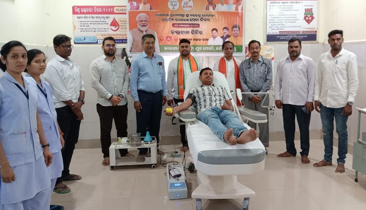ବୌଦ୍ଧ,୧୭/୯- ଆଜି ବୌଦ୍ଧ ଜିଲ୍ଲା ବିଜେପି ଯୁବମୋର୍ଚ୍ଚା ପକ୍ଷରୁ ନରେନ୍ଦ୍ର ମୋଦୀଜିଙ୍କ ୭୨ ତମ ଜନ୍ମତିଥି ପାଳନ ଅବସରରେ “ସେବା ପକ୍ଷ’ର ପ୍ରଥମ ଦିନରେ ଏକ ରକ୍ତଦାନ ଶିବିର ଅନୁଷ୍ଠିତ ହୋଇଯାଇଛି । ଏହି ରକ୍ତଦାନ ଶିବିରକୁ ଜିଲ୍ଲା ମୁଖ୍ୟ ଚିକିତ୍ସାଧିକାରୀ ଡ.ଅଭୟ କୁମାର ଦାସ ଉଦଘାଟନ କରିଥିଲେ । ଅନ୍ୟମାନଙ୍କ ମଧ୍ୟରେ ମେଡିକାଲ ଅଧ୍ୟକ୍ଷ ଡ. କିଶୋର ଚନ୍ଦ୍ର ପଟ୍ଟନାୟକ ଓ ଅନ୍ୟାନ୍ୟ ଡାକ୍ତର ଉପସ୍ଥିତି ରହି କାର୍ଯ୍ୟକ୍ରମରେ ଯୋଗଦାନ କରିଥିଲେ । ଜିଲ୍ଲା ବିଜେପି ସଭାପତି ବିପ୍ର ଚରଣ ମହାନ୍ତି, ଜିଲ୍ଲା ଯୁବମୋର୍ଚ୍ଚା ସଭାପତି ଅଟଳ ପ୍ରଧାନ, ଓମ ପ୍ରକାଶ ମିଶ୍ର, ତାପସ କୁମାର ପଟ୍ଟନାୟକ, ସତ୍ୟାନନ୍ଦ ପାଣ୍ଡେ, ବିଶିକେସନ୍ ବିଶି, ନାରାୟଣ କର୍ମୀ, ଦାମୋଦର ମିଶ୍ର, ଅଧ୍ୟାପକ ପ୍ରବୀର ଦାସ ଉପସ୍ଥିତ ଥିଲେ । ଏହି ଶିବିରରେ ୧୫ ୟୁନିଟ ରକ୍ତ ସଂଗୃହିତ ହୋଇଥିଲା ।