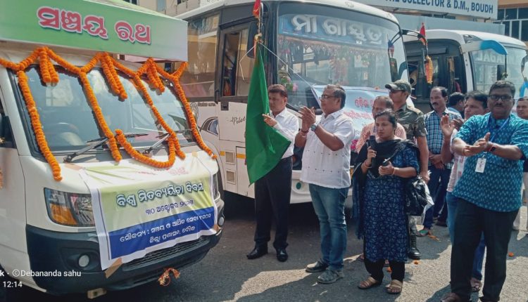 ବୌଦ୍ଧ,୩୦/୧୦:- ବୌଦ୍ଧ ଜିଲ୍ଲା ପ୍ରଶାସନ, ସଞ୍ଚୟ ଓ ଆର୍ଥିକ ସେବା ସଂଗଠନ ମିଳିତ ଆନୁକୂଲ୍ୟରେ ଆଦି ବିଶ୍ୱ ମିତବ୍ୟୟିତା ଦିବସ ପାଳିତ ହୋଇଯାଇଛି । ଏହି ଅବସରରେ ସଚେତନତା ପାଇଁ ଏକ ସଞ୍ଚୟ ରଥକୁ ଜିଲ୍ଲାପାଳ ନୃସିଂହ ଚରଣ ସ୍ୱାଇଁ ସବୁଜ ପତାକା ଦେଖାଇ ଶୁଭାରମ୍ଭ କରିଥିଲେ । ଅନ୍ୟମାନଙ୍କ ମଧ୍ୟରେ ବୌଦ୍ଧ ବ୍ଲକ ଅଧ୍ୟକ୍ଷ ପ୍ରିୟଦର୍ଶୀ ପ୍ରତ୍ୟୁଷ ରଥ, ଜିଲ୍ଲା ସୂଚନା ଓ ଲୋକସଂପର୍କ ଅଧିକାରୀ ରୀତାକାନ୍ତି ବଳିୟାରସିଂହ, ଡେପୁଟି କଲେକ୍ଟର କୁମୁଦ ଚନ୍ଦ୍ର ଦଳବେହେରାଙ୍କ ସମେତ ସଞ୍ଚୟ ସେବା ସଂଗଠନର କର୍ମଚାରୀମାନେ ଉପସ୍ଥିତ ଥିଲେ । ଟଙ୍କା ସଞ୍ଚୟର ଗୁରୁତ୍ୱକୁ ଲୋକେ ଉପଲବ୍ଧି କରିବା ଏହି ଦିବସ ପାଳନର ମୁଖ୍ୟ ଉଦ୍ଦେଶ୍ୟ । ଏହି ରଥ ଜିଲ୍ଲାର ବିଭିନ୍ନ ଅଞ୍ଚଳକୁ ଯାଇ ଲୋକଙ୍କୁ ସଞ୍ଚୟ ପାଇଁ ସଚେତନ କରିବ ।