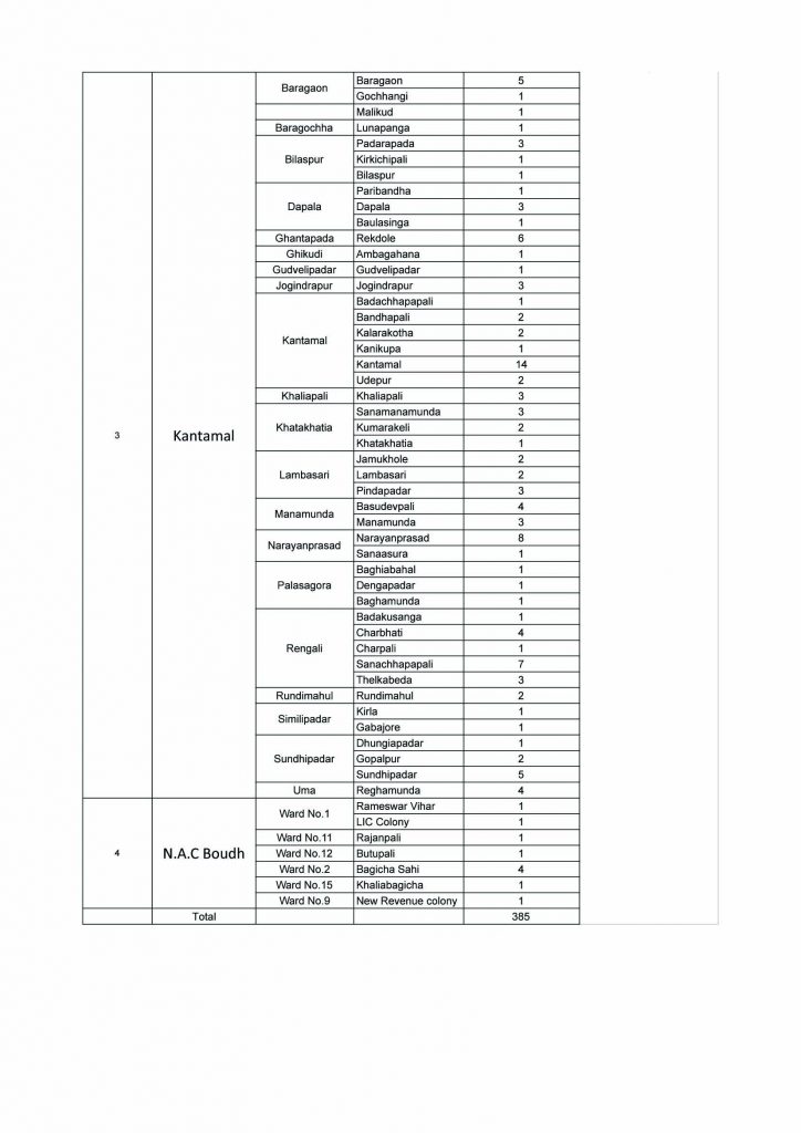 ଆଜି ବୌଦ୍ଧଜିଲ୍ଲାରୁ ରେକର୍ଡ ସଂଖ୍ୟକ ୩୮୫ କରୋନା ଆକ୍ରାନ୍ତ ଚିହ୍ନଟ, ବ୍ରାହ୍ମଣପାଲି ପଞ୍ଚାୟତର ପିଙ୍ଗଲାବେଡା ଗ୍ରାମରୁ ୫୩ ଓ ଶଗଡା ପଞ୍ଚାୟତର କୁଆଁରପଡା ଗ୍ରାମରୁ ୫୨ ଜଣ ଚିହ୍ନଟ