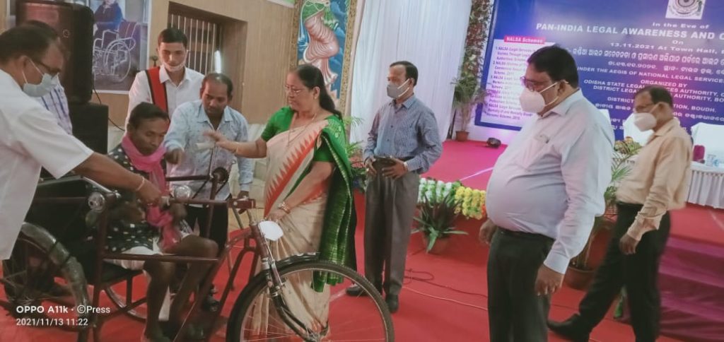 ବୌଦ୍ଧ,୧୩/୧୧- ଆଜି ସ୍ଥାନୀୟ ଟାଉନହଲ ଠାରେ ଆଇନ ସମ୍ବନ୍ଧିତ ଏକ ମେଗା ଶିବିର ଅନୁଷ୍ଠିତ ହୋଇଯାଇଛି । ଜାତୀୟ ଆଇନସେବା ପ୍ରାଧିକରଣର ତତ୍ତ୍ୱାବଧାନରେ ଜିଲ୍ଲା ଆଇନସେବା ପ୍ରାଧିକରଣ ଓ ଜିଲ୍ଲା ପ୍ରଶାସନ ମିଳିତ ଆନୁକୂଲ୍ୟରେ ଅନୁଷ୍ଠିତ ଏହି ଶିବିରରେ ମୁଖ୍ୟଅତିଥି ଭାବେ ଜିଲ୍ଲା ଜଜ୍ ତଥା ଜିଲ୍ଲା ଆଇନସେବା ପ୍ରାଧିକରଣ ଅଧ୍ୟକ୍ଷା ସୁଶ୍ରୀ ପ୍ରତିମା ପଣ୍ଡା ଯୋଗ ଦେଇଥିଲେ । ସମ୍ମାନୀତ ଅତିଥିଭାବେ ଜିଲ୍ଲାପାଳ ଲଲାଟେନ୍ଦୁ ମିଶ୍ର, ଅତିରିକ୍ତ ଏସପି ରବୀନ୍ଦ୍ର କୁମାର ରାଉତ, ଫେମିଲି ଜଜ୍ ପ୍ରସନ୍ନ କୁମାର କର୍ଣ୍ଣ ଯୋଗ ଦେଇଥିଲେ । ମୁଖ୍ୟଅତିଥି ଓ ସମ୍ମାନୀତ ଅତିଥି ପ୍ରଭୁ ଶ୍ରୀଜଗନ୍ନାଥଙ୍କ ଠାରେ ପ୍ରଦୀପ ପ୍ରଜ୍ୱଳନ କରିଥିଲେ । ଏହି ଅବସରରେ ମୁଖ୍ୟଅତିଥି ସୁଶ୍ରୀ ପଣ୍ଡା ଆଇନର ବିଭିନ୍ନ ଦିଗ ଉପରେ ବୁଝାଇବାସହ ଗରିବ ଜନସାଧାରଣ କିପରି ଏହି ଆଇନର ସହାୟତା ନେଇପାରିବେ ସେ ଉପରେ ବକ୍ତବ୍ୟ ରଖିଥିଲେ । ସମ୍ମାନୀତ ଅତିଥି ଫେମିଲି ଜଜ୍ ପ୍ରସନ୍ନ କର୍ଣ୍ଣ ଗରିବ ଜନସାଧାରଣ କୌଣସି କେଶ୍ ଲଢିବା ପାଇଁ ଯଦି ଓକିଲ ଦେଇପାରୁନଥିବେ ତେବେ ସରକାରଙ୍କ ତରଫରୁ ତାଙ୍କୁ ଓକିଲ ଯୋଗାଇ ଦିଆଯିବ ବୋଲି କହିଥିଲେ । ବିଭିନ୍ନ ଆଇନ ବିଷୟରେ ପ୍ରାଞ୍ଜଳ ଭାବେ ବୁଝାଇଥିଲେ । ଜିଲ୍ଲାପାଳ ଶ୍ରୀ ମିଶ୍ର ସରକାରଙ୍କ ପ୍ରଦତ୍ତ ସ୍କିମକୁ ବିଭିନ୍ନ କ୍ୟାଂପ ମାଧ୍ୟମରେ ପ୍ରଚାରପ୍ରସାର କରିବାକୁ କହିଥିଲେ । ଏହି ଅବସରରେ ବିଭିନ୍ନ ହିତାଧିକାରୀମାନଙ୍କୁ ସହାୟତା ରାଶି ପ୍ରଦାନ କରାଯାଇଥିଲା ।