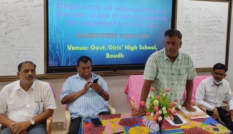 ବୌଦ୍ଧ,୨୮/୪:- ବୌଦ୍ଧ ସହରର ସରକାରୀ ବାଳିକା ଉଚ୍ଚ଼ ବିଦ୍ୟାଳୟ ପରିସରରେ ଜିଲ୍ଲାସ୍ତରୀୟ ପଞ୍ଚଦିବସୀୟ ଦକ୍ଷତା ବୃଦ୍ଧି ତାଲିମ ଉଦଯାପିତ ହୋଇଯାଇଛି । ଗତ ୨୩ ତାରିଖ ଠାରୁ ଆରମ୍ଭ ହୋଇଥିବା ୫ଟି ହାଇସ୍କୁଲ ପ୍ରଧାନଶିକ୍ଷକ ଓ ଶିକ୍ଷକ /ଶିକ୍ଷୟିତ୍ରୀ ମାନଙ୍କର ନେତୃତ୍ୱ ବିକାଶ ଓ ଡିଜିଟାଲ ଜ୍ଞାନ କୌଶଳ ଅଭିବୃଦ୍ଧି ତାଲିମ ବୁଧବାର ସମାପ୍ତ ହୋଇଥିଲା । ଉକ୍ତ ତାଲିମର ଉଦଯାପନୀ କାର୍ଯ୍ୟକ୍ରମରେ ମୁଖ୍ୟ ଅତିଥି ଜିଲ୍ଲା ଶିକ୍ଷା ଅଧିକାରୀ ଡଃ ଉଦୟନାଥ ମାଝୀ, ଡିଜିଟାଲ ଜ୍ଞାନ କୌଶଳ ହାସଲ କରିବା ସହିତ ଇ ଲାଇବ୍ରେରୀ, ବିଜ୍ଞାନଗାରର ବ୍ୟବହାର କରିବା ଉପରେ ସମସ୍ତ ଶିକ୍ଷକ /ଶିକ୍ଷୟିତ୍ରୀ ଗୁରୁତ୍ୱଦେବାକୁ ଆହ୍ୱାନ କରିଥିଲେ । ସମ୍ମାନୀତ ଅତିଥି ବୌଦ୍ଧ ଗୋଷ୍ଠୀ ଶିକ୍ଷା ଅଧିକାରୀ ଧ୍ରୁବ ଚରଣ ଘିବେଲା ଶିକ୍ଷଣ ଶିକ୍ଷାଦାନରେ ଡିଜିଟାଲ ଜ୍ଞାନକୌଶଳର ଆବଶ୍ୟକତା ରହିଛି, ଉକ୍ତ କୌଶଳ ଶିକ୍ଷଣ ପାଇଁ ଶିକ୍ଷକ ଓ ଛାତ୍ରମାନଙ୍କ ମାନସିକତା ଆବଶ୍ୟକ ରହିଛି ବୋଲି ବକ୍ତବ୍ୟ ରଖିଥିଲେ । ଜିଲ୍ଲା ବିଜ୍ଞାନ ନିରୀକ୍ଷକ ଦେବେନ୍ଦ୍ର କୁମାର ଦେହୁରୀ କାର୍ଯ୍ୟକ୍ରମର ଉଦ୍ଦେଶ୍ୟ ଜ୍ଞାପନ କରିବା ସହିତ ବିବରଣୀ ପ୍ରଦାନ କରିଥିଲେ ।