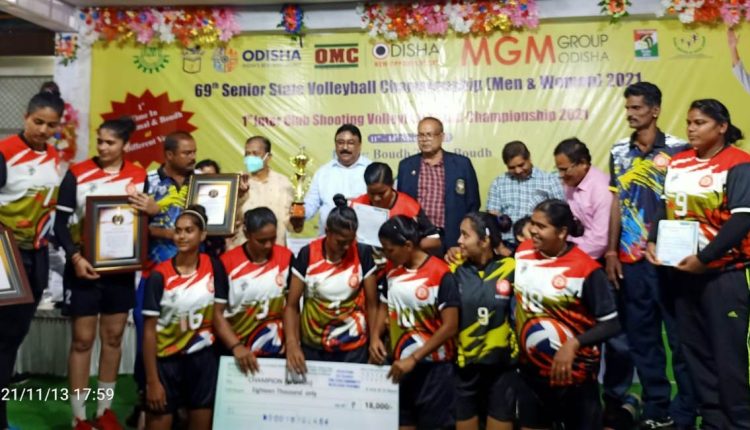 ବୌଦ୍ଧ,୧୩/୧୧- ଗତ ୧୧ ତାରିଖ ଠାରୁ ବୌଦ୍ଧରେ ଆରମ୍ଭ ହୋଇଥିବା ୬୯ ତମ ରାଜ୍ୟ ମହିଳା ଭଲିବଲ ଚଂପିଆନସିପ ଆଜି ସନ୍ଧ୍ୟାରେ ଉଦ୍ଯାପିତ ହୋଇଯାଇଛି । ଉଦ୍ଯାପନୀ ଉତ୍ସବରେ ବୌଦ୍ଧ ବିଧାୟକ ପ୍ରଦିପ କୁମାର ଅମାତ ମୁଖ୍ୟଅତିଥି ଭାବେ ଯୋଗ ଦେଇଥିବା ବେଳେ ସମ୍ମାନୀତ ଅତିଥି ଭାବେ ବୌଦ୍ଧ ଜିଲ୍ଲାପାଳ ଲଲାଟେନ୍ଦ୍ୁ ମିଶ୍ର, ଅତିରିକ୍ତ ଜିଲ୍ଲାପାଳ ବବିତାରାଣୀ ଦଳବେହେରା, ଜିଲ୍ଲା ଗ୍ରାମ୍ୟ ଉନ୍ନୟନ ସଂସ୍ଥା ପ୍ରକଳ୍ପ ନିର୍ଦ୍ଦେଶକ ଅଶ୍ୱିନୀ କୁମାର ମେହେର, ଓଡିଶା ଭଲିବଲ ସଂଘର କାର୍ଯ୍ୟକାରୀ ସଭାପତି ସଞ୍ଜୟ କୁମାର ଦାସ, ଉପସଭାପତି ସୟଦ ଅକମଲ ଅଲ୍ଲୀ ଏବଂ ଜିଲ୍ଲା କ୍ରୀଡାସଂଘର ସଂପାଦକ ରବୀନ୍ଦ୍ର କୁମାର ରାଉତ ଯୋଗଦେଇଥିଲେ ।