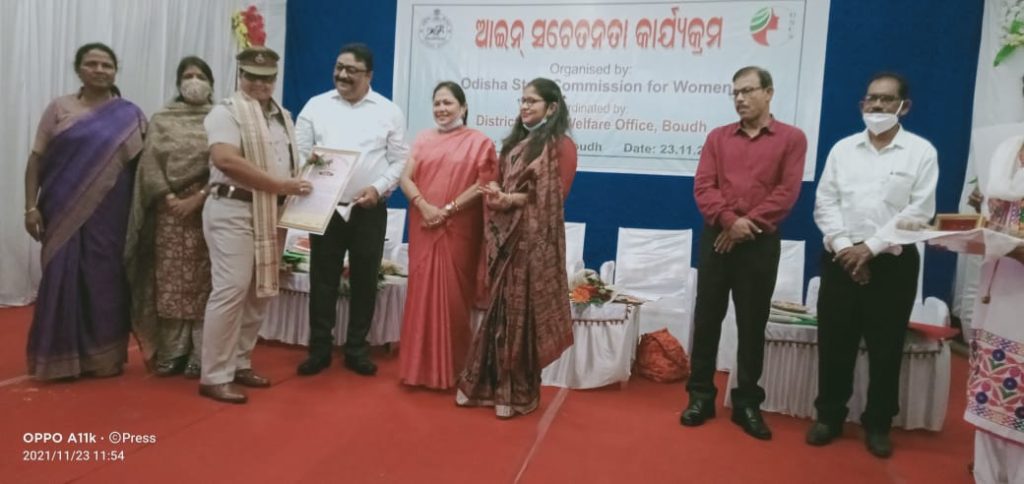 ବୌଦ୍ଧ,୨୩/୧୧- ସ୍ଥାନୀୟ ଟାଉନହଲଠାରେ ରାଜ୍ୟ ମହିଳା କମିଶନଙ୍କ ଦ୍ୱାରା ଆୟୋଜିତ ଆଇନ ସଚେତନତା କାର୍ଯ୍ୟକ୍ରମ ଅନୁଷ୍ଠିତ ହୋଇଯାଇଛି । ଏହି କାର୍ଯ୍ୟକ୍ରମରେ ରାଜ୍ୟ ମହିଳା କମିଶନ ଡଃ. ମିନତୀ ବେହେରା ମୁଖ୍ୟଅତିଥି ଭାବେ ଯୋଗ ଦେଇଥିଲେ । ସମ୍ମାନୀତ ଅତିଥି ଭାବେ ଜିଲ୍ଳାପାଳ ଲଲାଟେନ୍ଦୁ ମିଶ୍ର, ଅତିରିକ୍ତ ଜିଲ୍ଲା ଆରକ୍ଷୀ ଅଧିକ୍ଷକ ରବିନ୍ଦ୍ର କୁମାର ରାଉତ, ସଦସ୍ୟା ସୁଶ୍ରୀ ସ୍ନେହାଞ୍ଜଳି ମହାନ୍ତି, ଜଲିନା ପ୍ରିୟଦର୍ଶିନୀ, ଅତିରିକ୍ତ ଏସପି ବିଜୟା ବରୁଆ ପ୍ରମୁଖ ଯୋଗଦେଇ ମହିଳାଙ୍କ ସୁରକ୍ଷା ପାଇଁ ରହିଥିବା ବିଭିନ୍ନ ଆଇନଗତ ବ୍ୟବସ୍ଥା, ପାରିବାରିକ ହିଂସା,ଯୌତୁକ ନିରୋଧ ଆଇନ, ବାଲ୍ୟ ବିବାହ, ନାରୀ ନିର୍ଯ୍ୟାତନା, ଶିଶୁ ନିର୍ଯ୍ୟାତନା,ଏତାଲା ଦାଖଲ ସହିତ ମହିଳାମାନଙ୍କୁ ସମାଜର ମୁଖ୍ୟସ୍ରୋତରେ ସାମିଲ କରିବାକୁ ଆହ୍ୱାନ ଜଣାଇଥିଲେ ।
