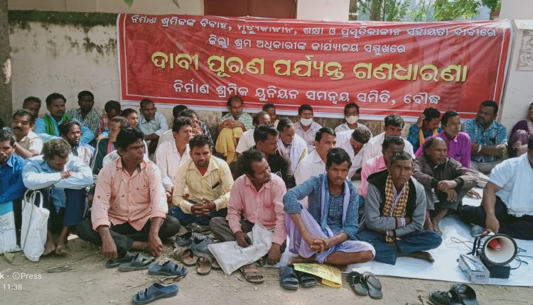 ବୌଦ୍ଧ,୩୦/୧୧:- ଆଜି ଜିଲ୍ଲା ଶ୍ରମ ଅଧିକାରୀଙ୍କ କାର୍ଯ୍ୟାଳୟ ସମ୍ମୁଖରେ ନିର୍ମାଣ ଶ୍ରମିକ ୟୁନିୟନ ସମନ୍ୱୟ ସମିତି ତରଫରୁ ଗଣଧାରଣା ଦିଆଯାଇଛି । ଏହି ଗଣଧାରଣାରେ ଶତାଧିକ ମହିଳା ଓ ପୁରୁଷ ନିର୍ମାଣ ଶ୍ରମିକ ସାମିଲ ହୋଇଛନ୍ତି । ୨୦୧୯-୨୦ ମସିହାରୁ ସେମାନଙ୍କୁ ଶିକ୍ଷା ସହାୟତା ରାଶି ଦିଆଯାଇନଥିବାବେଳେ ବିବାହ ସହାୟତା ରାଶି ପ୍ରଦାନରେ ମଧ୍ୟ ଟାଳଟୁଳ ନୀତି ଅବଲମ୍ବନ କରୁଥିବା ସେମାନେ ଅଭିଯୋଗ କରିଛନ୍ତି । ୨ହଜାରରୁ ଉର୍ଦ୍ଧ୍ୱ ନିର୍ମାଣ ଶ୍ରମିକ ଝିଅ ବିବାହ ସହାୟତା ପାଇଁ ଆବେଦନ କରିଥିଲେ ସୁଦ୍ଧା ସେମାନଙ୍କୁ ତାହା ମିଳିନଥିବା କହିଛନ୍ତି । ଏଥିସହିତ କରୋନା ସମୟରେ ମୃତ୍ୟୁବରଣ କରିଥିବା ଶ୍ରମିକମାନେ ଟଙ୍କା ପାଇବାରୁ ମଧ୍ୟ ବଞ୍ଚିତ ହୋଇଛନ୍ତି ।