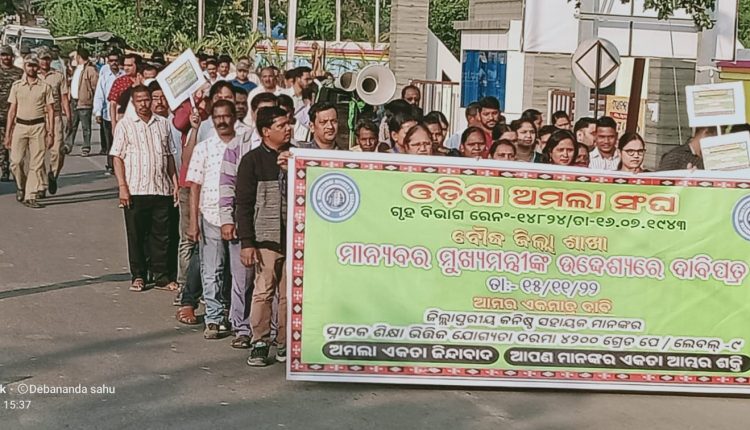 ବୌଦ୍ଧ,୧୫/୧୧: ବୌଦ୍ଧ ଜିଲ୍ଲା ଅମଲା ସଂଘ ଶାଖା ପକ୍ଷରୁ ସ୍ଥାନୀୟ ମାଉସୀମା’ ମନ୍ଦିର ପରିସରରୁ ଶତାଧିକ କର୍ମଚାରୀ ଏକ ଶୋଭାଯାତ୍ରାରେ ବାହାରି ଜିଲ୍ଲାପାଳଙ୍କ କାର୍ଯ୍ୟାଳୟରେ ପହଞ୍ଚି ବିକ୍ଷୋଭ ପ୍ରଦର୍ଶନ କରିବା ସହିତ ଏକ ଦାବିପତ୍ର ଅତିରିକ୍ତ ଜିଲ୍ଲାପାଳଙ୍କ ଜରିଆରେ ମାନ୍ୟବର ମୁଖ୍ୟମନ୍ତ୍ରୀଙ୍କ ଉଦ୍ଦେଶ୍ୟରେ ପ୍ରଦାନ କରିଥିଲେ । ୨୦୧୭ ମସିହା ରାଜ୍ୟ ସରକାରଙ୍କ ନିୟମ ମୁତାବକ ରାଜ୍ୟର ସମସ୍ତ ଅମଲା କର୍ମଚାରୀଙ୍କୁ ୪୨୦୦ ଗ୍ରେଡ଼ ପେ ଲାଗୁ କରିଥିଲେ, ଯୁକ୍ତ+୨ରୁ ସ୍ନାତକତର ଥିବା କର୍ମଚାରୀଙ୍କୁ ଗ୍ରେଡ଼ ପେ ୪୨୦୦ କରିଥିବାବେଳେ ଜିଲ୍ଲାରେ କାର୍ଯ୍ୟରତ ଅମଲା କର୍ମଚାରୀଙ୍କୁ ଏହାର ଅନ୍ତର୍ଭୁକ୍ତ କରିନାହାନ୍ତି । ଯାହାଫଳରେ ଅମଲାମାନଙ୍କ ମନରେ ନୈରାଶ୍ୟଭାବ ସୃଷ୍ଟି କରିଛି । ଏହି ଦାବିକୁ ଦୀର୍ଘଦିନ ହେବ ଦାବିକରି ଆସୁଥିଲେ ମଧ୍ୟ କୌଣସି ସୁଫଳ ମିଳିନଥିବାରୁ ଆଜି ଏକ ଶୋଭାଯାତ୍ରା ବାହାରି ଜିଲ୍ଲାପାଳଙ୍କ ଜରିଆରେ ଦାବିପତ୍ର ଦେଇଥିବାବେଳେ ଯଦି ଏହି ଦାବି ଆଗାମୀ ୨୭ତାରିଖ ପୂର୍ବରୁ ପୂରଣ ନହେଲେ ରାଜ୍ୟର ତିରିଶ ହଜାର ଅମଲା କର୍ମଚାରୀ ୨୭ତାରିଖ ଦିନ ରାଜ୍ୟ ସରକାରଙ୍କ ସଚିବାଳୟ ଘେରାଓ ହେବ ବୋଲି ଚେତାବନୀ ଦେଇଛନ୍ତି । ଦାବିପତ୍ର ପ୍ରଦାନ ସମୟରେ ଅମଲାସଂଘ ବୌଦ୍ଧଜିଲ୍ଲା ଶାଖାର ସଭାପତି ଶତ୍ରୁଜିତ ମହାପାତ୍ର, ସଂପାଦକ ସୁଦାମ ମିଶ୍ର, ସୁପ୍ରଭା ପ୍ରଧାନ, ଉପଦେଷ୍ଟା ରାଜଗୋପାଳ ମହାପାତ୍ରଙ୍କ ସମେତ ଅମଲାସଂଘର କର୍ମଚାରୀମାନେ ଉପସ୍ଥିତ ଥିଲେ ।